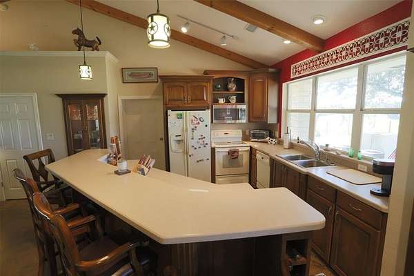 - Built-In Features, Cable TV Available, Granite Counters, Kitchen Island, Natural Woodwork, Open Floorplan, Pantry, Vaulted Ceiling(s)