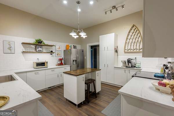 Tucked beneath towering hardwoods on 1.5 private acres, this mid-century split-level ranch blends classic 1950s charm with generous modern space. A freshly painted exterior, low-pitched roof and broad picture windows create crisp curb appeal, welcoming you into light-filled living. Inside, an airy main level flows from a sun-splashed living room to an open dining area-perfect for gatherings. Three well-sized bedrooms and two full baths offer comfortable retreats, while the partial upper level gives you flexible bonus space for a home office, playroom or studio. Step outside to an expansive, park-like backyard where there's room for gardens, pets, a fire-pit or even future additions. With no HOA and ample frontage, the possibilities are wide-open-add a workshop, pool, or keep it simply as your own wooded oasis. Located minutes from downtown Macon shopping, dining and I-75/I-16 access, yet feeling worlds away from the bustle, 1485 Lone Oak Dr delivers the rare combination of acreage, mid-century character and in-town convenience. Bring your vision and make this classic Georgia home your own!