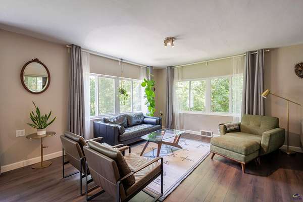 A rare blend of modern style and classic Shirley Hills charm, featuring a rooftop balcony accessed from the rear of the home. This beautifully updated residence offers a clean, contemporary feel throughout, with bright, open living spaces, thoughtful updates, and a layout designed for today's lifestyles. The owner's suite includes an adjoining flex room, ideal for a nursery, private office, fitness space, or quiet retreat. Barn doors off the main living area open to an additional large room, perfect for a dedicated home office, creative studio, or secondary living space--offering excellent separation for work-from-home or multi-use needs. Outdoor living is a standout feature, from the unique rooftop balcony to the beautifully landscaped, private grounds surrounded by mature trees. The expansive yard provides rare privacy and flexibility for entertaining, gardening, or simply enjoying the outdoors. The drive-under basement garage offers excellent storage and functional space, adding versatility without impacting the home's heated living area. Situated on two parcels totaling approximately 1.5 acres, this property delivers modern comfort, flexible living, and exceptional land value in one of Macon's most desirable neighborhoods just minutes from downtown, shopping, dining, and I-75.