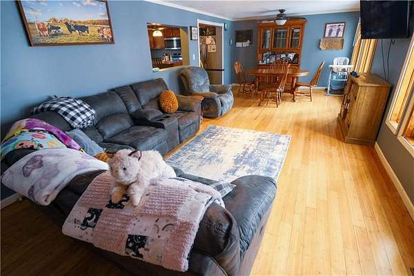 *5 Bedroom /2 Bath home sitting on a full basement with a walkout access setting on almost 4 acres! This home offers a two-level living with upstairs featuring three bedrooms, two full bathrooms, a kitchen with a pantry, a front room, and a master suite. Downstairs includes a family room, a walkout basement, two bedrooms, one nonconforming room, a laundry room, and a sump pump, providing flexible living space and potential for additional use. Mechanical updates include a new water heater, HVAC and all water lines have been replaced. Externally, there is a small pond in the front yard, a 30x30 outbuilding with a 10-foot overhang on electric, as well as a camper carport, offering substantial storage and workshop options. The property's 3.75 acres provide ample space for outdoor activities and future improvements, delivering a private, rural setting with plenty of potential. This property is suitable as a family residence with room for guests or in-law living, a quiet homestead or hobby farm with outbuilding storage with potential to optimize the nonconforming downstairs space! Come check it out today!