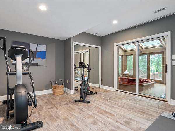 - Additional Stairway, Bar, Bay Front Primary Bedroom, Breakfast Area, Built-Ins, Ceiling Fan(s), Country Kitchen, Dining Area, Double/Dual Staircase, Eat-In Kitchen, Family Room Off Kitchen, Formal/Separate Dining Room, Gourmet Kitchen, Island Kitchen, Open Floor Plan, Primary Bath(s), Recessed Lighting, Skylight(s), Soaking Tub Bathroom, Spiral Staircase, Stall Shower Bathroom, Table Space Kitchen, Tub Shower Bathroom, Upgraded Countertops, Walk-In Closet(s), Walk-In Shower Bathroom, Water Treat System, Wine Storage, Wood Floors