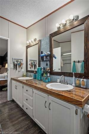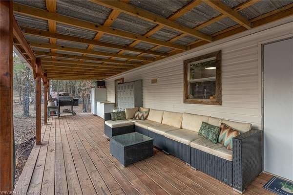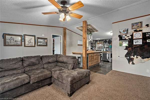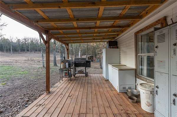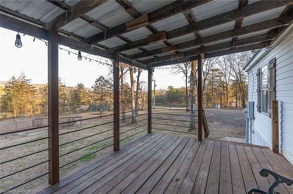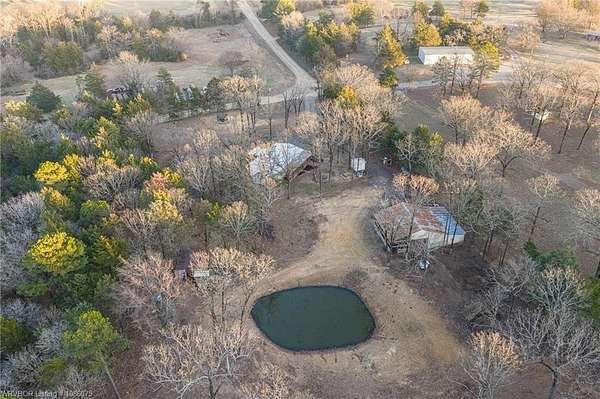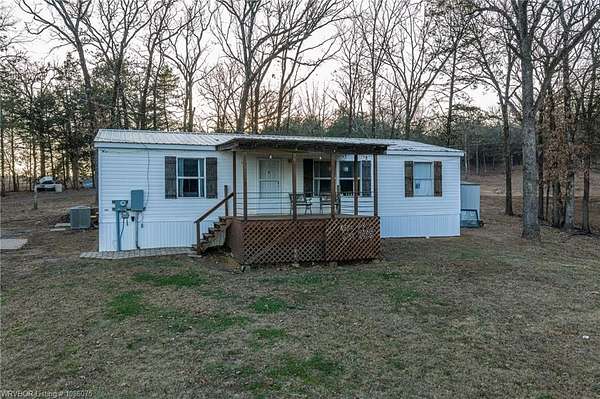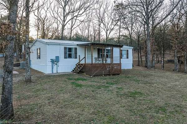 Welcome home sweet home to your farm dream with a pond and seclusion on 5 spacious acres. Here your dreams can come to life. 3 bed 2 bath mobile home with a full length covered back patio and a covered front porch. Band new septic, brand new water, brand new porches just built. Bring your horses, cattle, goats, sheep, pigs, all your furry friends. They will have their own accommodations here as well. Property features an 8ft deep pond that can be stocked in the near future for fishing. There is a 48x30 cattle/horse barn with 4 stalls, 1 tie stall, and a tack/feed room. Additional 18x24 barn that is half concreted, has a feed room and several runs with goat fencing off of it. City water to both barns, city water to garden, 10-4x8 raised metal garden beds, grain bin chicken coop with chicken run, fresh dug pond 2025, 2.5 acres cleared, and 2.5 acres wooded with Cedar, Pine, Oak, and Hickory wood. Deer frequent daily, outside city limits can hunt and shoot on your own land. Can take wood to Bonneville Sawmill for money. Metal roof 5 years old, HVAC, hot water heater, flooring all 2 years old. All appliances convey, back deck 10x44 covered and built in 2025, front deck covered. 2 sides of the property are fully fenced, the perimeter on the left is ll fenced, and the back is part fenced, also there is some fencing for animals. If you want privacy, seclusion, woods, and to be outside city limits with a garden and a pond this is the place for you. Welcome Home. Schedule your tour today.