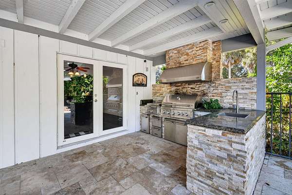 - Auto Sprinkler, Built-In Grill, Covered Patio, Extra Building, Fence, Open Patio, Private Pool, Shed