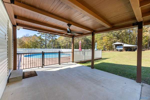 Est $1,302/moStunning 2BR/2BA on 3 private acres! This move-in ready home features brand new windows, flooring, doors, paint & trim throughout. Updated kitchen countertops & completely renovated master bath. Recent 3-year roof. Outdoor paradise includes above ground pool with expansive deck, charming front porch for morning coffee, RV shed & additional outbuilding for storage. Perfect blend of modern updates and country living!
