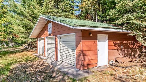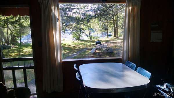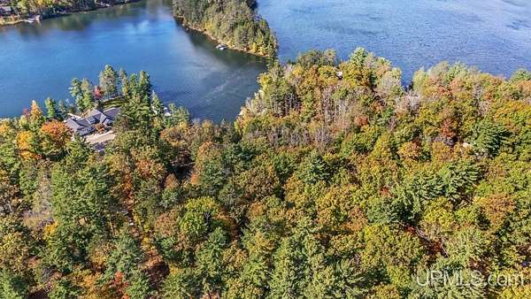 Special opportunity: Rare 2.5 acre waterfront parcel with southern exposure on Bass Lake, with 208 ft of sandy beach frontage level to the water's edge! Ideally situated across from Eagle Island on the crystal clear, spring-fed Spread Eagle Chain, consisting of eight interconnected lakes. The property comes with three fully furnished rustic cottages, three boat docks, plus a large 3-stall boathouse that features a furnished rec room, equipment storage room, and fish cleaning facility. Drilled well, septic, underground electric services, and propane are already on site with natural gas available. The sandy beach provides for good swimming and water sports and the Spread Eagle Chain is well known for excellent fishing. The elevated location makes for absolutely incredible lake views as the value is in the land itself. Just imagine this stunning setting as the backdrop for your dream home, in an incredible location just 8 miles east of Iron Mountain, Michigan.