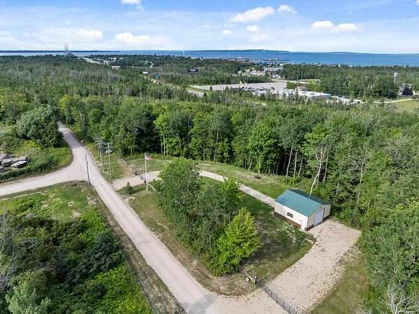 This is an ideal spot for your Up North weekend camp or the perfect place to build your future home. Located just south of the Mackinac Bridge, this 1.3-acre property offers a mix of cleared land in the front and wooded privacy in the backan excellent combination for both immediate use and long-term plans. Enjoy the peaceful beauty of Northern Michigan, from stargazing and northern lights to campfires under the open sky. The property features a 30' x 30' pole barn garage with a 200-amp electrical panel inside and a 50-amp RV hookup on the exterior, making camping and storage incredibly convenient. Natural gas is available across the driveway, and both water well and septic permits have been approved. Zoned R-2 Residential, this is a buildable site for up to a 4-bedroom home, with possible commercial use, offering a wide range of development opportunities. With 314 feet of frontage on a private road and a depth of 185 feet, the lot provides privacy and flexibility. Outdoor recreation is just minutes away with improved hiking and biking trails, public beaches, and nearby ferry lines to Mackinac Island. There's even a KOA campground close by for visiting friends and family. Store all your summer and winter toys right on sitespend your summers boating, fishing, and swimming in the Straits of Mackinac, and your winters snowmobiling and ATV riding right from your garage. Easy access to I-75 makes it a breeze to head north into the Upper Peninsula or south back home. Whether you're looking for a seasonal escape or a year-round base, this property offers the perfect starting point for a life full of Northern Michigan adventures.