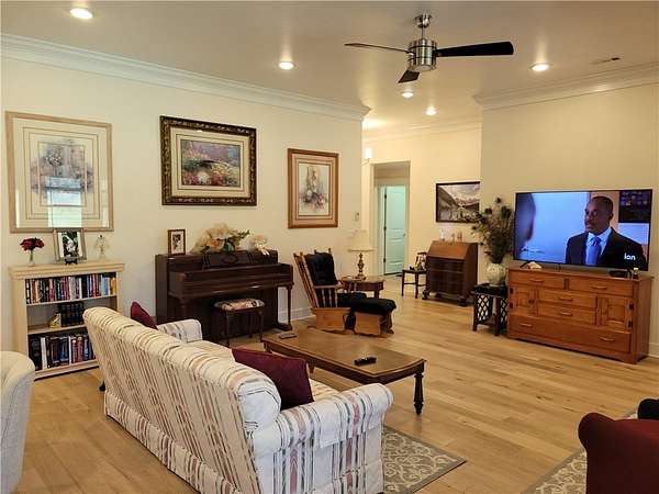This home has so much to offer: 5 bedrooms, 3 full bathrooms, open floor plan, high-end features, a detached 1,000 sq ft shop with a 2-car garage door and extra storage space, an extra-wide driveway for additional parking, a walk-in storm shelter in the garage, all sitting on over 1.5 acre lot with a fenced back yard and beautiful landscaping all around. Upgrades include new roofs on house and shop in Sep/2025, construction of shop and extension of driveway in Jan/2024, enclosed the back patio in Jun/2024, added wood privacy fencing around the backyard in Nov/2024, and renovated one of the bathrooms for handicap accessibility in Feb/2024. Does not convey: safe in garage, drapes on windows. Does convey: All appliances including refrigerator, washer & dryer; Ring doorbell, storm shelter in garage. Please do not touch the covered cars in the detached workshop/garage!