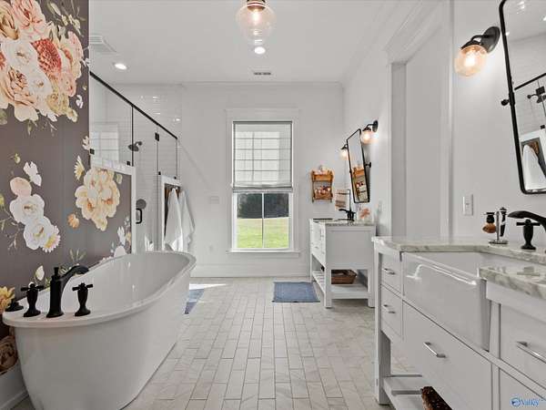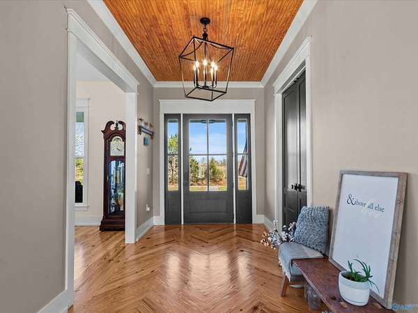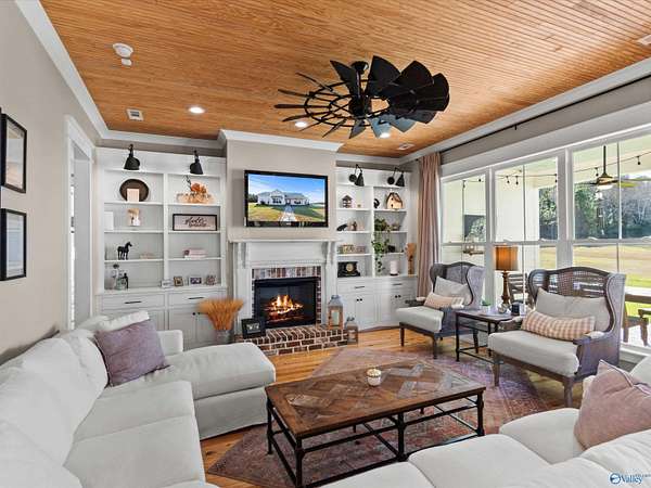 Completely one-of-a-kind and beautifully remodeled, this 1898 farmhouse is full of charm and custom detail, with surprises around every turn. Step inside to soaring custom ceilings, oversized rooms, and a warm, inviting layout. The main living area opens to an expertly equipped kitchen, with a walk-in pantry close by for effortless storage. Entertain in the formal dining room with a fireplace, then retreat to the isolated primary suite featuring a spacious glamour bath. A dedicated home office makes working from home easy. Enjoy quiet mornings on the covered front porch swing under the classic metal roof. Must see to appreciate! Every inch feels curated, blending history with modern comfort.