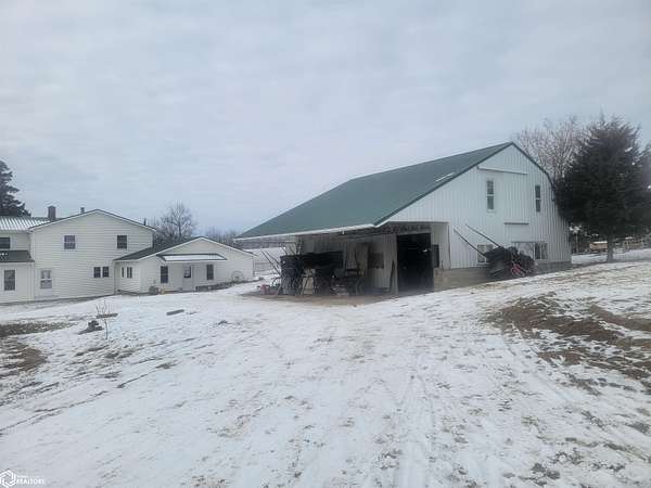 This property has proven success for hobby/produce/farm income with three greenhouse hoop buildings and business already established at this location. Many travel here in the spring for the best selection and variety of potting plants and vegetables.This business has also provided hand-made lawn furniture for sale along with many other hand-crafted items.The home is larger than most, seven bedrooms, and can be host to extended family guests - strangers and friends!This Amish-built home will need modernizing with electrical and rural water - currently being served by a well for human consumption as well as for the business at the greenhouses. In addition to well water, the business is being supplied irrigation from a pond and two boilers provide heating for the greenhouses. Two wood stoves provide heating for the home as well as cooking. It may seem like a large undertaking but many in our community have been very successful in transforming Amish acreages into their dream home!! In addition to the greenhouses, a 4200 sf steel framed barn for livestock, chicken house, loafing shed, kennel along with other small outbuildings offer endless possibilities for storage and workshops. The home has one main level bedroom, full bath, and six bedrooms on the second story - beautiful hardwood floors and kitchen cabinets along one wall with abundant counterspace for cooking and preparation. Many more details - just ask for specifics!