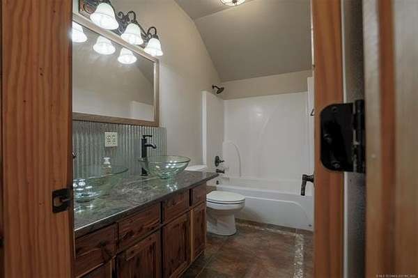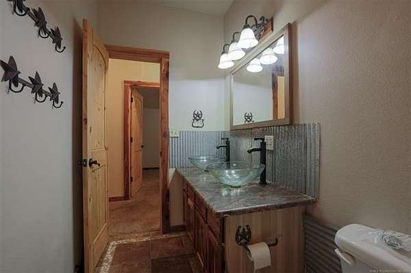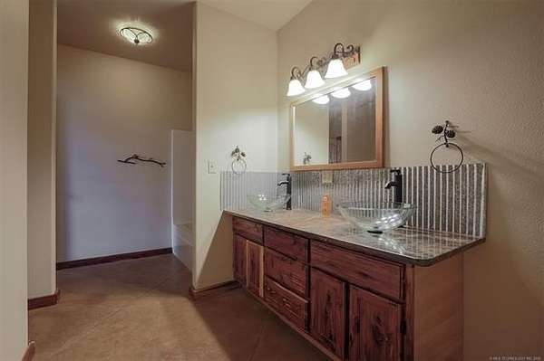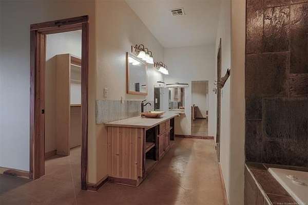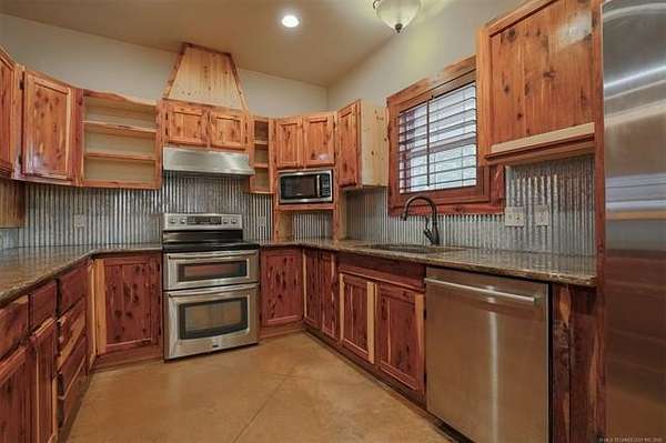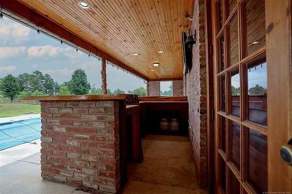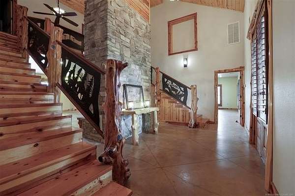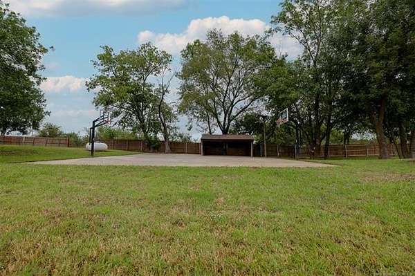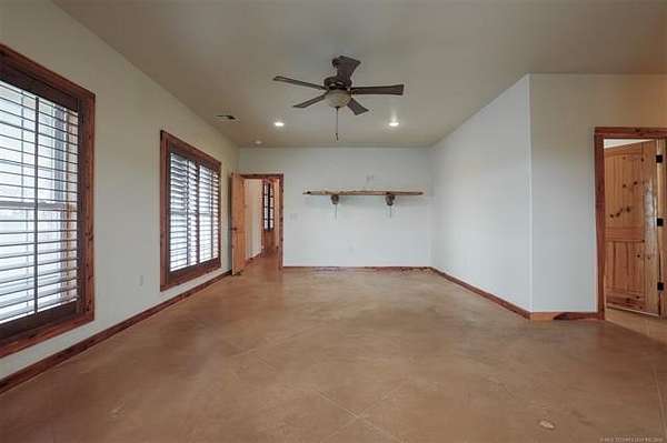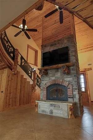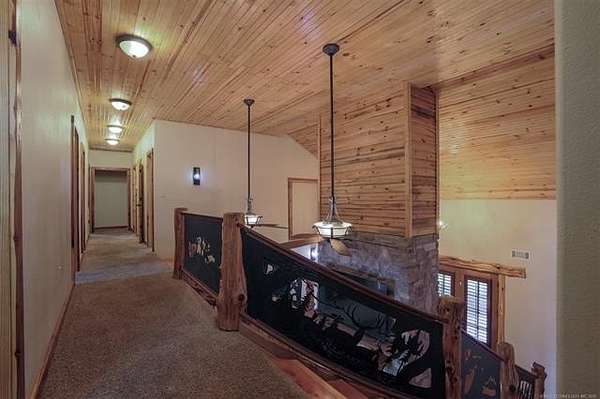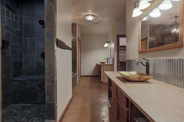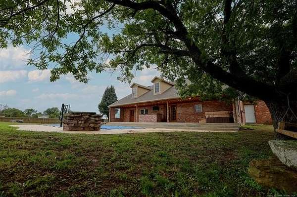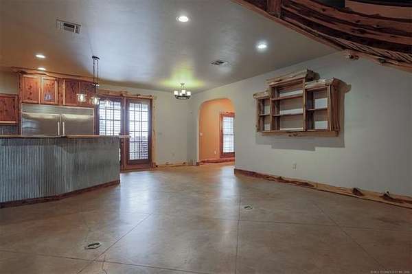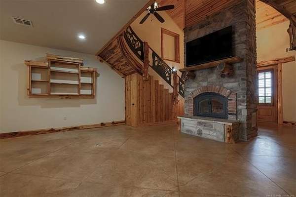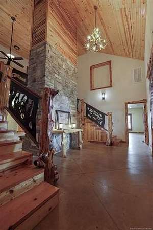 Come make memories in this rustic style dream home located on 2 acres. Lots of space to house a large and/or growing family, as well as to host any number of those special holidays for extended family and friends. Dramatic floor to ceiling stone fireplace centered between an equally impressive double staircase greets you as you walk in the front door. Heated concrete floors throughout the home. Kitchen opens to the living room and has stainless steel appliances, custom granite countertops and a huge walk-in pantry off downstairs utility room. Large primary bedroom has a cozy sitting area, his/her walk-in closets, a separate whirlpool tub and a ginormous (yes, that is this realtor's term) walk-in shower. Separate room off master would make a great nursery or small office. Office/study downstairs can be 8th bedroom. Enjoy the outdoors with a Saltwater pool with waterfall, outdoor kitchen area, basketball court and firepit! This home also provides a storm shelter in the garage, and for the tinkerer in the family, this property also includes an approx. 50x100 insulated shop with electric, heat, concrete floors. Come see this beautiful home today.