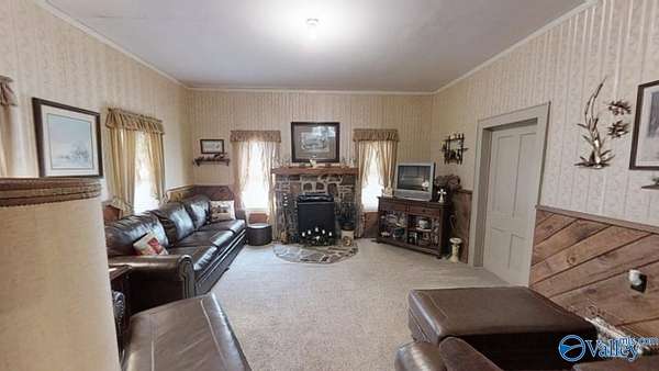 Near Smith Lake - Located in Crane Hill - Partially Historical building. The original part of the home was built in 1914. Large older home w/updating over the years. Large spacious rooms with tall ceilings. Walls and floors in some rooms are tongue and groove wood. Sits on 4 + acres. Home has 3 BR, 1 BA, kitchen/dining area, living room w/fireplace, utility room, large foyer. Upstairs is not finished, but could be. A couple of out buildings, old barn and corn crib. The land lays gentle to a slight slope in back. 3 wells on the property plus city water. A covered wrap around porch, private setting. Great location for someone to put a B & B, lots of character in this home. 24 hr notice