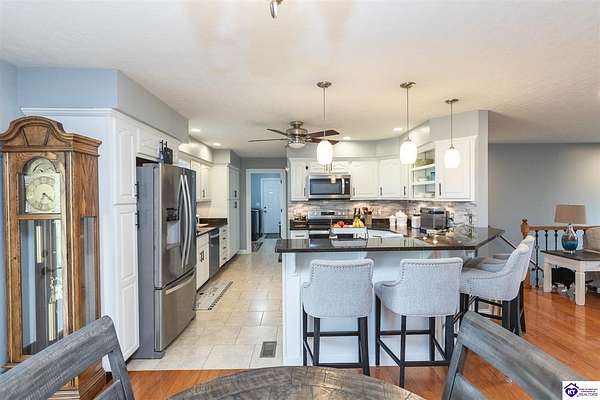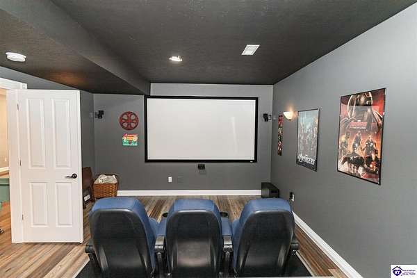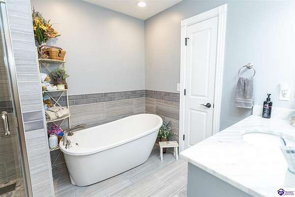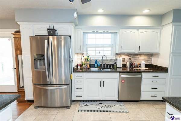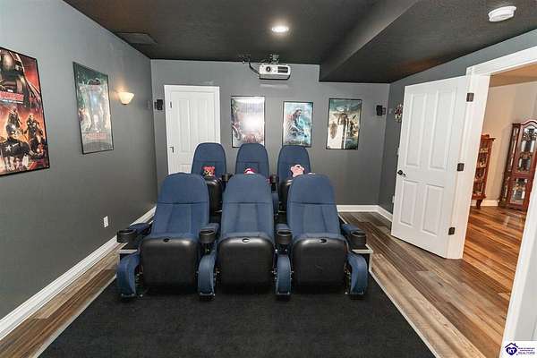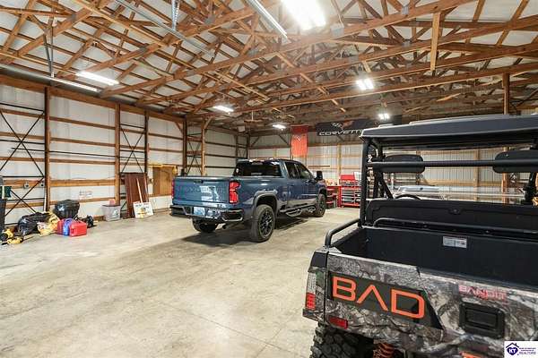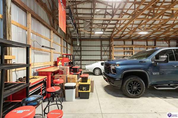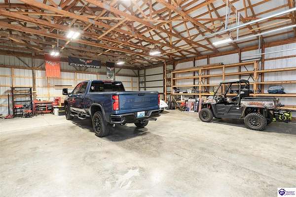 Come tour this 4 bedroom, 3 full bath home with a huge garage / shop building sitting on 5 gorgeous acres in Cecilia. This home has so many features it is hard to know where to start. The kitchen has granite counters, tile flooring, stainless appliances, and tons of cabinet space. From there, you are in the open living and dining area that both have beautiful hardwood floors. The living room has loads of natural light coming in through the windows and the dining area walks out to the back yard. On one side of the home, the primary suite is enormous. The bedroom has a tray ceiling with ceiling fan and can handle any furniture you have. You could get lost inside the large, custom shelved primary closet. The primary bath is amazing, with its freestanding tub and amazing tiled in shower. The split floor plan has the other main floor guest bedrooms on the opposite side of the home for maximum privacy. Both guest bedrooms are quite large. The guest bath has tile floor and granite counter top. Rounding out the main floor is the laundry conveniently located off the garage. As you head into the basement, the home just keeps getting better. The 4th bedroom is downstairs. The large family room can be used for all kinds of entertaining. Speaking of entertaining, the basement has a full theater room that comes fully equipped with theater seating, projector, screen, and speakers. Not to mention the custom floor lighting for that extra special theater touch. There is also a very large storage room. The basement walks out to the secluded patio with stamped concrete and custom drainage that goes all the way to the road so no ponding of water occurs. This area stays protected from the wind and is fantastic for a nice evening of entertaining guests or just relaxing all by yourself. Outside, you can't miss the 40x46 shop building complete with concrete floors and electric. This is perfect for storing all your cars, boats, outdoor toys, and so much more. Behind the shop you have a covered carport as well as another covered area for storing your outdoor equipment needed to take care of the immaculate 5 acre lot. The grounds are truly amazing and well maintained. The pond has plenty of fish that have been fed and come to you if they hear the food bucket shaking. Don't miss out on this opportunity. It truly is amazing. Ask your agent for a private tour and for a list of all the recent updates and home features.