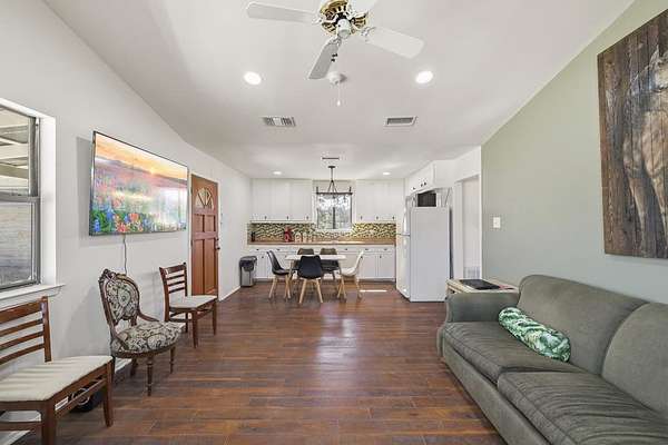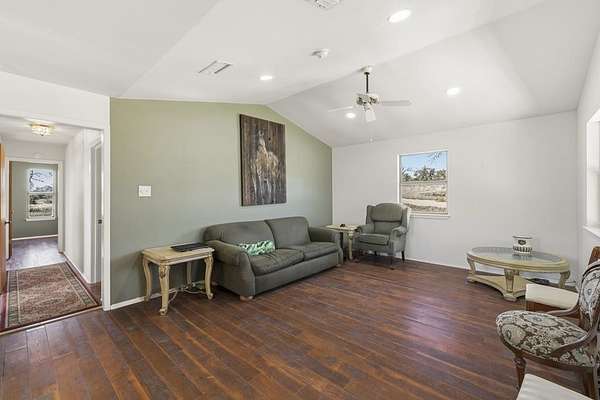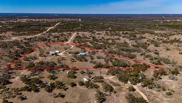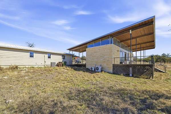 This Hill Country property is on the most serene 10.39 acres out there! So many features that include a 2/1 main home, Guest house and Metal barn/workshop. Improvements include: Septic system was installed in 11/04/2022 and is designed for multiple units. 30x40 shop with 15 ft ceiling on a concrete slab, wired for lights and electrical outlet, two 10x10 ft rollup doors and one 8x8 ft rollup door. The older home was newly wired, plumbed and HVAC in the past five years. And the oven and microwave are new as of one year ago. The newer home was built within the past five years w/four air/heat splits (two main units are in working order, two smaller units are in need of service). It's set up like a studio but you could easily readjust the interior to create a closed off bedroom and add a kitchen. Off the back (through the siding doors that open up all the way) is a huge covered trek deck that lends to amazing entertaining. The property is fully fenced, feels very private, Windmill with a newer submersible pump (about 3yrs) & Ag exempt. Beautiful country setting featuring an array of native wildlife and seasonal creek to be enjoyed off the back deck. Country living, close to everything!!