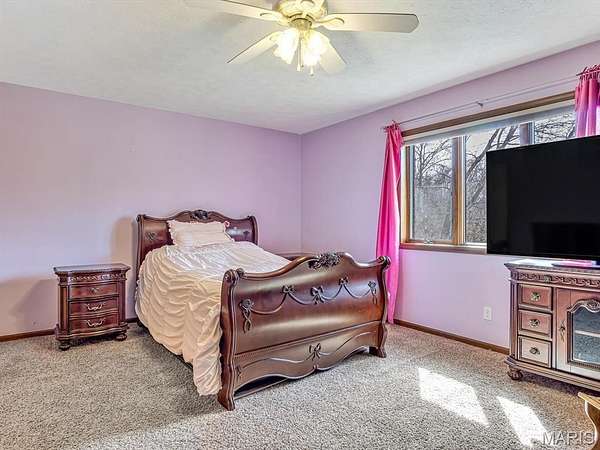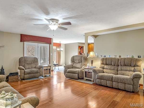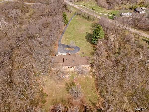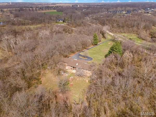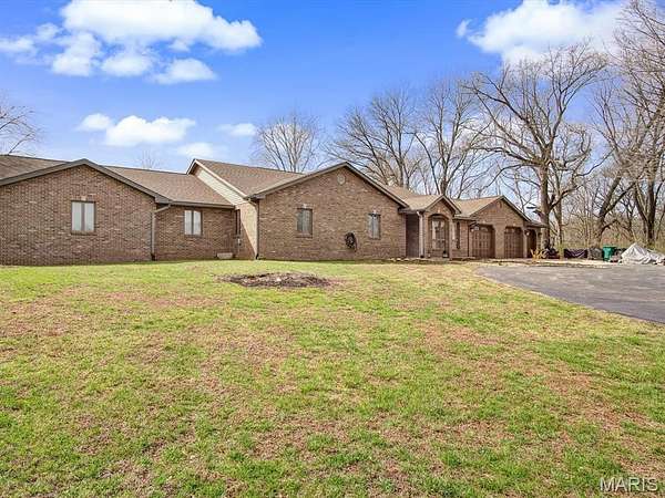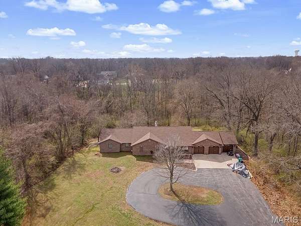 Rare opportunity to own a truly unique, highly desirable O'fallon estate on 5.71 rolling, wooded acres! This expansive 5,678 SF ranch offers room for everyone with 7 bedrooms, 5.5 baths, and a 3-car garage, plus a walk-out lower level that opens to peaceful views and endless possibilities. At the heart of the home is a large, functional kitchen featuring solid-surface countertops, cooktop, double ovens, center island, skylight with remote, and an oversized pantry with convenient pull-outs. Enjoy both a breakfast area and separate dining room, plus main-floor laundry for everyday ease. Cozy up by not one, but two fireplaces. A propane fireplace in the main floor living room and a wood-burning fireplace in the lower level. The primary suite is a private retreat with an expansive ensuite offering dual vanity, jetted tub, and private stool room. The property is perfectly set back with an asphalt driveway, circular drive, and a picturesque setting that feels like your own private retreat—yet still close to everything. Updates include a new roof (Oct 2025) and new refrigerator (Jan 2026). Piped for central vacuum and packed with extras—this is the kind of property that rarely comes available. OPEN HOUSE 3/15. Audio & video surveillance equipment in use.