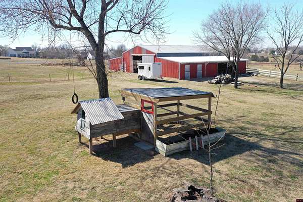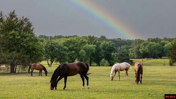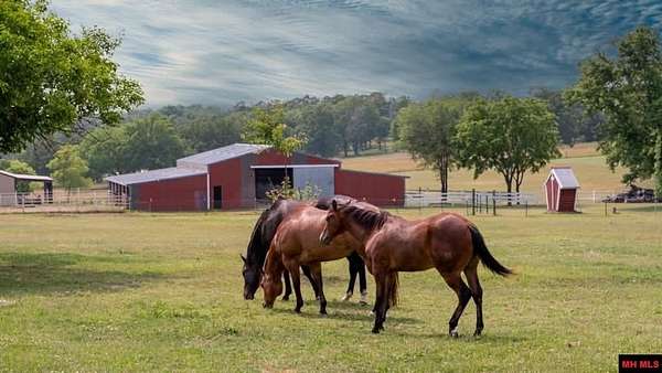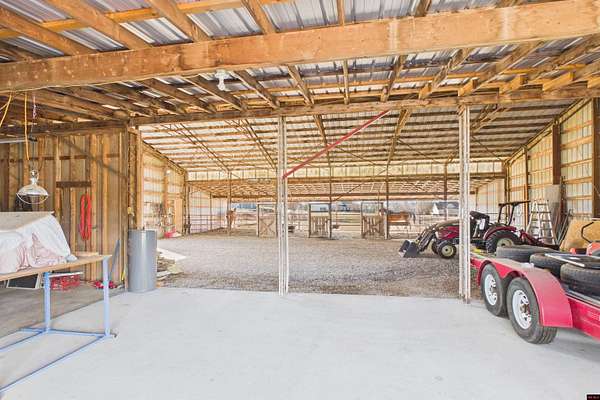 - Barn/Pole Barn, Corral/Stable, Fence, Gutters, Horses Allowed, Pond, RV Parking, Spring