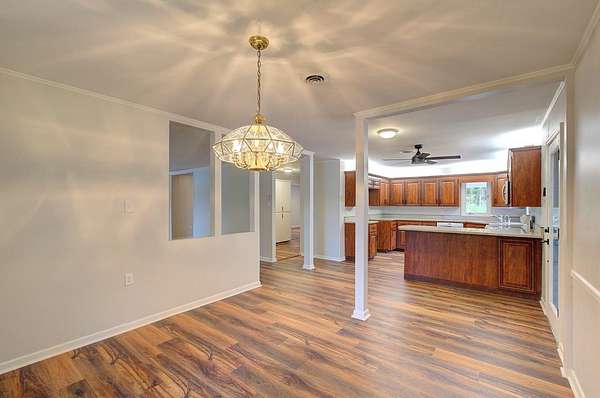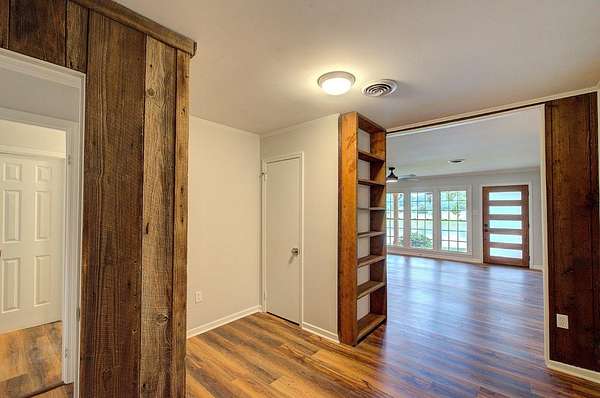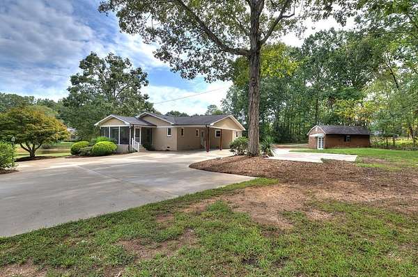 Tucked away in the scenic southern Spartanburg countryside, this beautifully renovated ranch home sits on over 5 acres, offering the ideal blend of privacy and convenience. Whether you're looking for a peaceful retreat or a place to entertain, this property delivers. Step outside to your own private resort, complete with a sparkling 20x44 inground pool and a picturesque 2-acre pond, perfect for fishing, canoeing, or simply enjoying the view.A large paved parking area near the home provides ample space for gatherings, barbecues, or extra vehicles. Enter through the welcoming screened porch or stroll up the extended front porch that overlooks the pond. Inside, you'll find a thoughtfully updated interior featuring luxury vinyl plank flooring throughout and the cozy charm of a gas log fireplace. The spacious kitchen offers abundant cabinetry and a generous dining area--perfect for everyday meals or hosting guests. The primary suite is a true retreat, complete with a sitting area, walk-in closet, and a beautifully renovated bath showcasing dual vanities and a walk-in tile shower. Two additional bedrooms and a stylish hall bath provide comfortable space for family or guests. A separate study adds flexibility for remote work or quiet reading. A hallway just off the kitchen leads to the carport and houses the laundry area, pantry, and a half bath--along with a flex room that can be used as a home gym, art studio, or a convenient poolside changing area. An outbuilding adds even more value, offering space for a workshop, hobbies, or additional storage. This property isn't just a home--it's a lifestyle. Enjoy the peace of country living while being just minutes from Spartanburg and Woodruff, with quick access to I-26. Featuring a beautiful mix of wooded and open land--and with the brand-new Woodruff High School scheduled to open in August 2026--this is a rare opportunity not to be missed.
