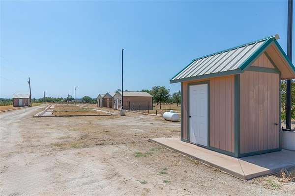 SELLERS OFFERING 10,000 in concessions, rate by down or off the price with an acceptable offer. Great opportunity for investors, developers, or homebuyers. This 2007 home features 3 bedrooms, 1 bath, luxury vinyl plank and tile flooring, a propane oven range, dual sinks in the bathroom, and a functional layout. The appliances, washer, dryer, and tankless water heater are less than 1 year old. The HVAC is an Energy Star unit, installed by an Energy Star technician. The interior has also been freshly painted.The property includes 19.65 acres with fencing and cross fencing, outbuildings, loafing sheds, storage, well houses, and a perimeter gate. Per CAD, there is a 600 sq. ft. kennel enclosure for small animals. Large concrete areas for kennels with grass in the middle are in place. Two water wells are present--one services the home, while the second's condition is unknown and it is not currently connected to power. A water softener is located in the well house (condition unknown). The well pump and control panel were replaced less than 1 year ago. There are also 2 electric meters. A 400 sq. ft. insulated building with bathroom, Gree mini split, and washer and dryer hookups provides flexible use for office or workspace. Additional features include a koi pond (pump needs work), an additional tank -pond currently dry, and a concrete pad suitable for a shop or barn. There is also space for parking, equipment, or recreation. The land carries an Ag Exemption, is outside city limits, and has access to I-20, close to restaurants, shops, and schools. This property offers acreage, improvements, and multiple possibilities.