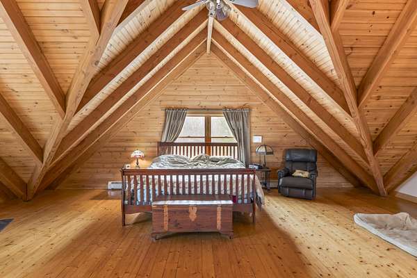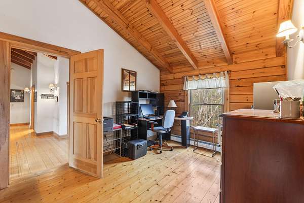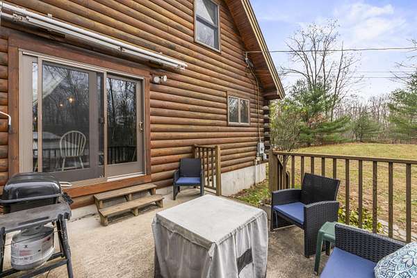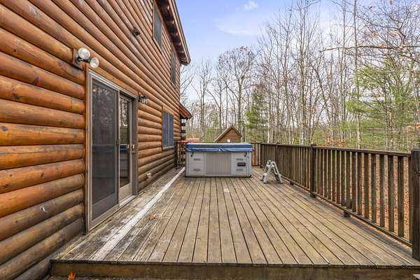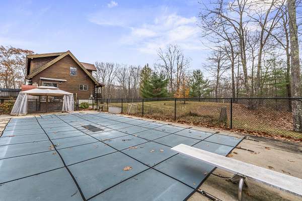Discover the perfect blend of rustic charm and modern comfort in this beautiful log home set on nearly 6 private acres on a quiet, secluded road. Surrounded by mature trees and abundant wildlife, this property offers exceptional privacy and a true sense of retreat. At the heart of the home stands a large, centrally located stone chimney that showcases both a cozy fireplace and 1900's wood burning cookstove, bringing warmth, character, and classic log-home charm to the living spaces. Additional features include a radiant heated garage floor for year-round convenience and an inviting in-ground pool and woodfired pizza oven perfect for relaxing or entertaining. This property blends natural beauty with comfort, making it an ideal full-time residence Located just 5 Miles from Kennebunk I95, 7 Miles to Sanford and 8.5 miles to Biddeford Crossing