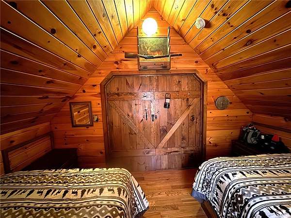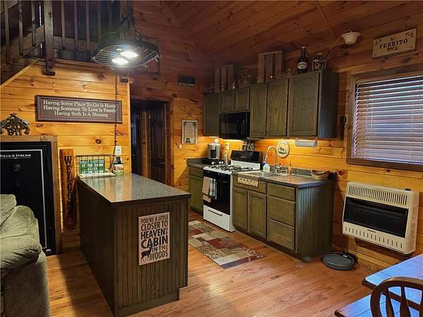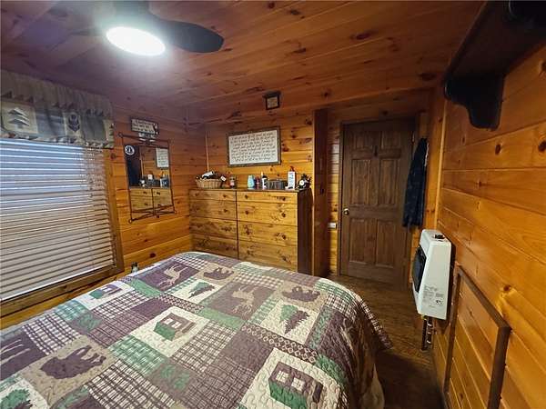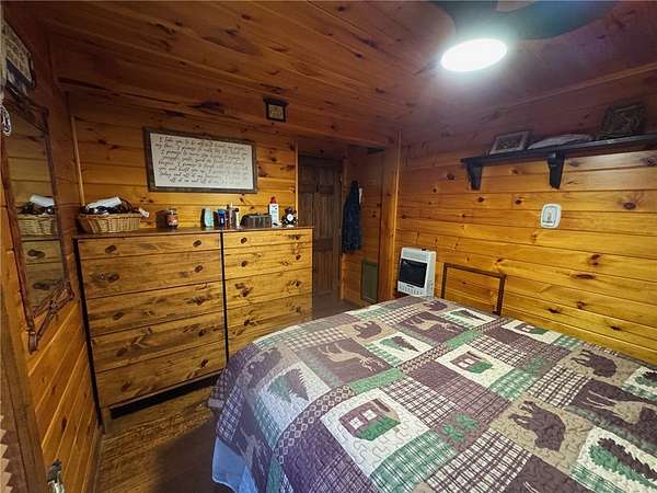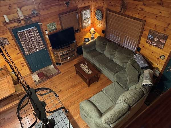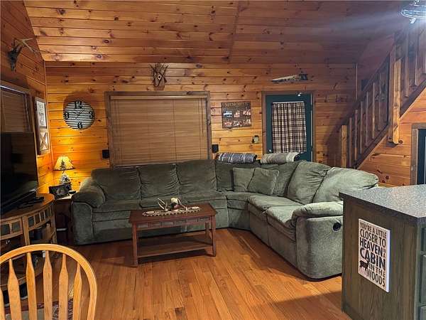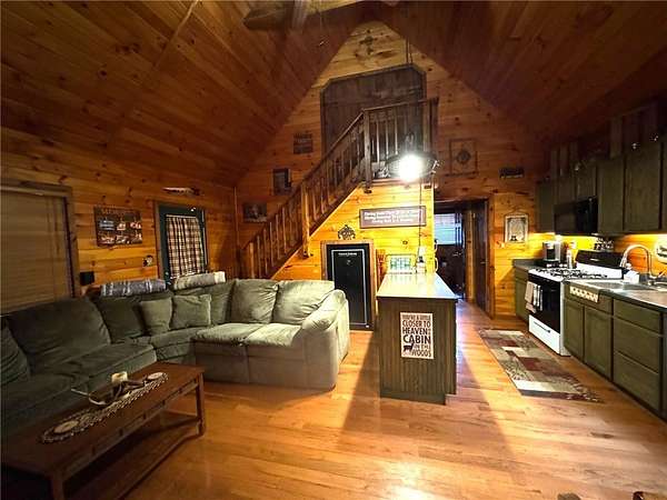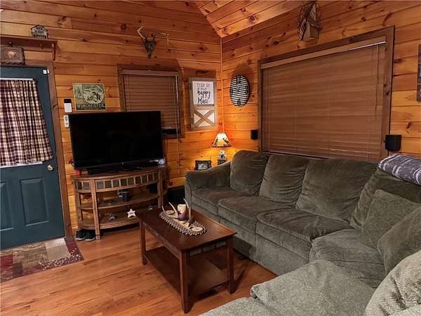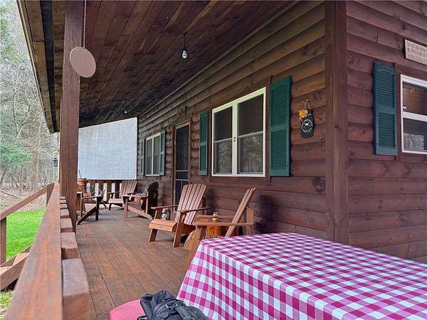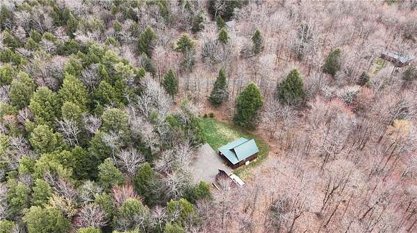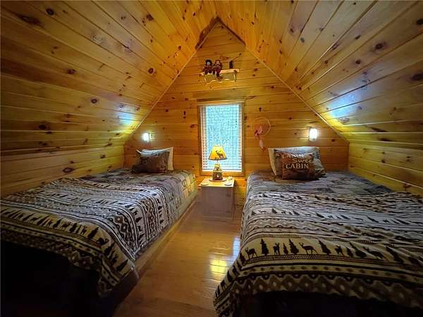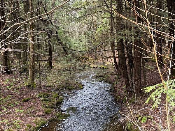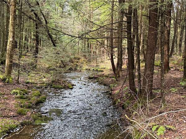 Welcome to Hemlock Haven Cabin! Beautifully finished chalet-style cabin tucked away in private Strongs Brook Acres. True wood interior with tongue-in-groove, wood floors and escape-to-nature decor, this is an escape from city-life. Offering all the comforts of home, with the ease of automation, this off-grid haven includes internet, comprehensive solar-power system, kitchen, comfortable bathroom with tub, drilled well and septic. Everything up-to-code, the builder dreamed of an oasis without the stress. Monitor from your phone when away. Enjoy perfection when in Upstate New York recreational territory. Travel down the long driveway as your log-side dream cabin comes into view. Wrap around porch with multiple seating areas and chimenea - a space for quiet wildlife-watching or festive parties. The pine covered Great Room is an open-floor plan. Custom dining table, smartly designed kitchen, comfortable living room, soaring 2-story ceilings with exposed beams - the cabin of your dreams! First floor bedroom, utility closet (with on-demand water heater) and full bath finish out the first floor. The second floor offers a private bedroom loft with wide plank door - your elegant treehouse in the forest. The Solar-Power Utility Shed includes heat, LAUNDRY AREA and separate space for the backup generator. The over 10 acre double lot includes a FIRE PIT, cleared area for additional RV or campsite... and a picturesque STREAM to draw in the wildlife. Bordering the 6,353 acre Five-Streams State Forest: hunt, hike, snowmobile, fish - find endless outdoor fun for adventure-seekers. This hidden gem offers top-notch amenities for an off-grid escape - don't let this rare opportunity slip away!