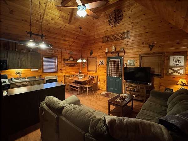 - Bedroom On Main Level, Breakfast Bar, Cathedral Ceilings, Ceiling Fans, Furnished, Great Room, Living Dining Room, Natural Woodwork