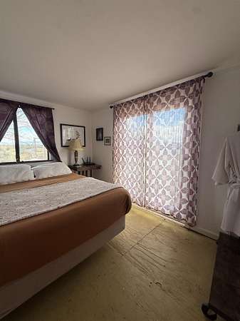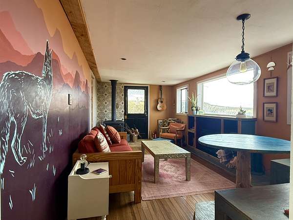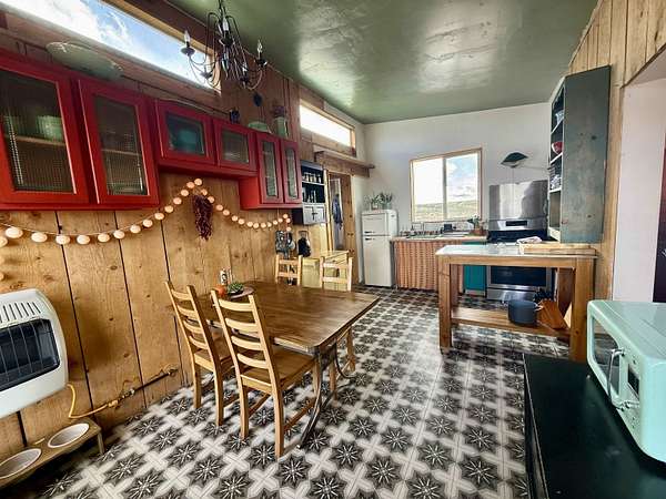 With such an approachable price this expansive 8.75 acre property offers a rare opportunity for a full-time residence, a private retreat, or an investment with vision. Equipped with High speed internet, the two-bedroom, one-bath main house is ready for its next chapter. Newer appliances include a Rinnai on-demand water heater, kitchen wall heater, range, refrigerator, and washer/dryer. The living room picture window frames ever-changing skies. A freestanding, insulated studio offers flexible potential for creative space, guest quarters, or a home office, with roughed-in plumbing and a glamping-style outdoor bath in place. Slow down and look up in the tiny, primitive off-grid A-frame. With windows framing expansive night skies, this cozy retreat invites unforgettable stargazing-where shooting stars become part of your nightly ritual. The property also features two additional sites suitable for a tiny home or RV (existing tiny home not included; site currently rented month-to-month). 15 miles to Ojo Caliente and 24 miles to Taos Plaza.