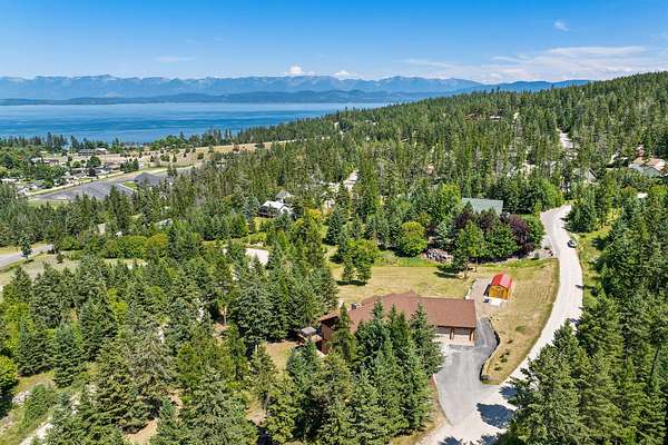 Beautiful Lakeside home with views of Flathead Lake. Perched just above town on a north facing hillside, this well-appointed 5Br/5Ba home sits on just under 2 acres with the perfect balance of privacy and access to Lakeside amenities. The living room is truly the heart of this home, featuring a fireplace that serves as a warm focal point, while the high and vaulted ceilings amplify the sense of spaciousness; the room also features built-in shelves and a beamed ceiling, adding character and architectural interest. The kitchen presents a culinary haven, complete with stone countertops and a backsplash that adds a touch of elegance; a large kitchen island with an island range hood and stovetop offers abundant space for meal preparation and casual dining at the kitchen bar, while the double oven makes it easy to host feasts. Sit out on the oversized deck and enjoy views of Flathead Lake and the mountains beyond.