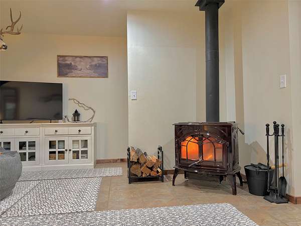 - Forced Air, Natural Gas, Wood, Wood Stove