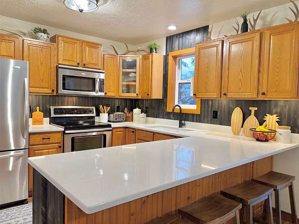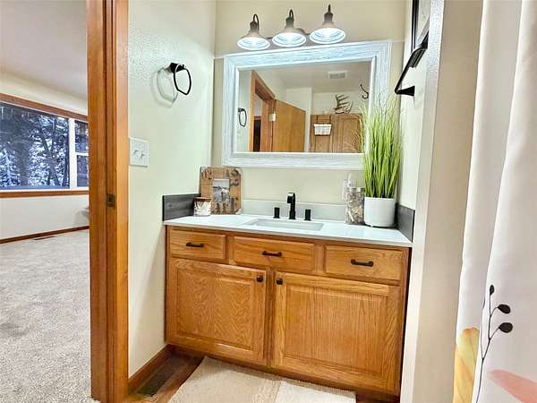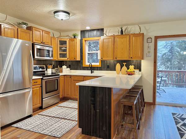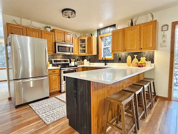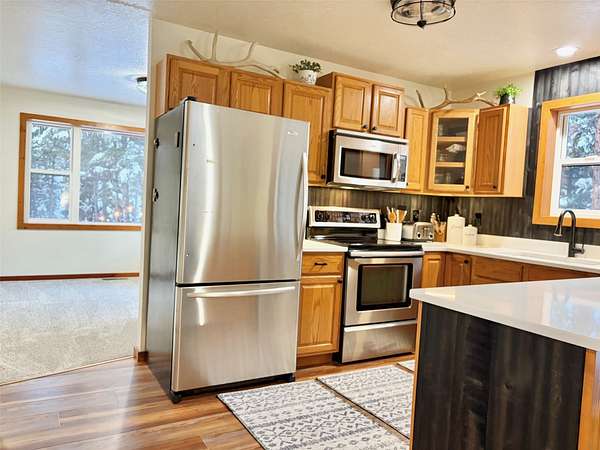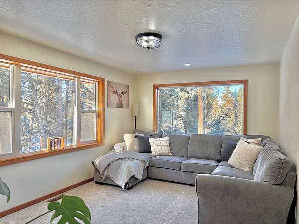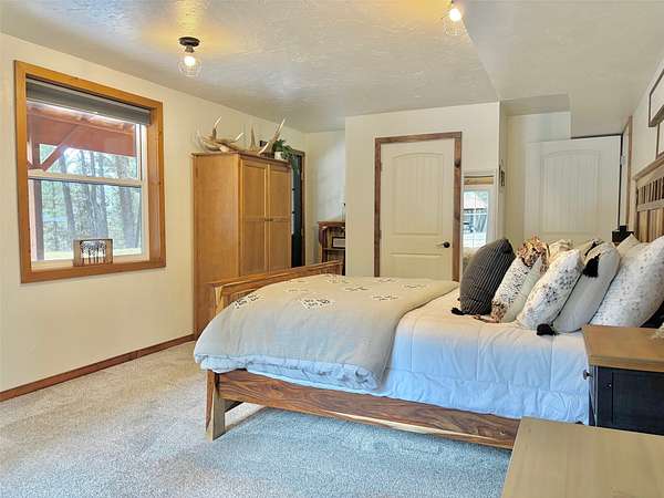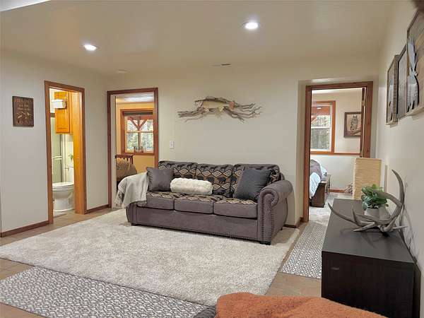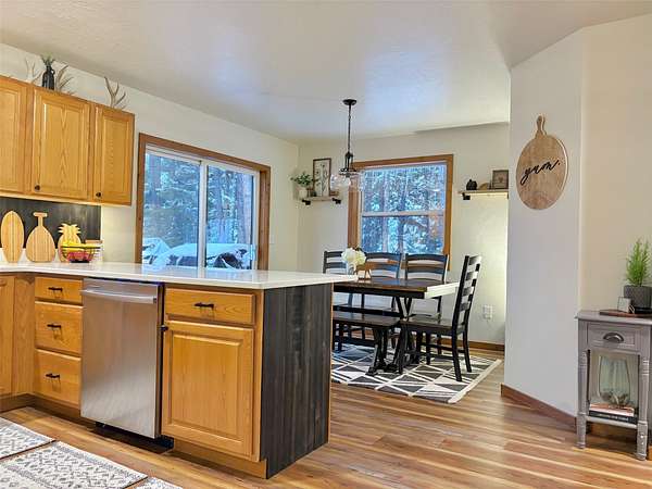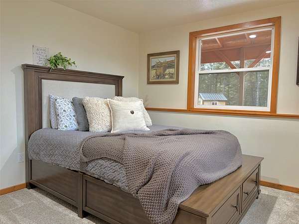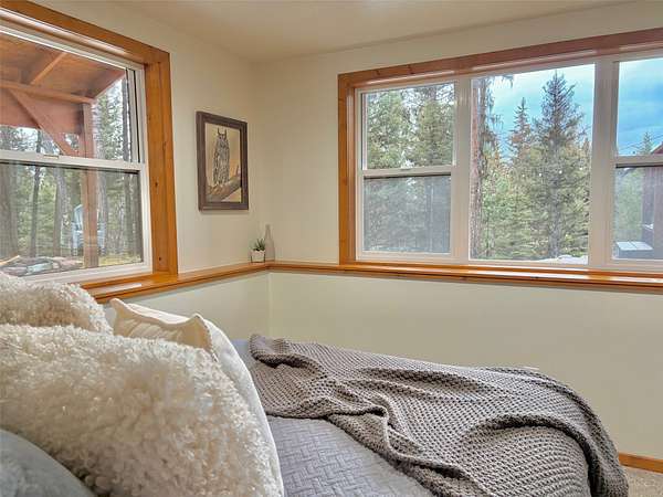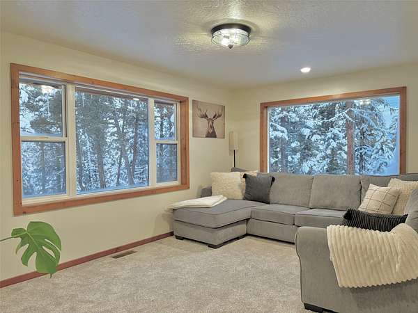 There is plenty of room for everyone in this move-in ready mountain home. Welcome to this newly updated 4-bedroom, 2-bathroom home on 2.66 acres in the highly coveted Double Arrow Ranch. This mostly level and treed lot is uniquely situated offering privacy and beautiful Mission Mountain views. Brand new flooring extends throughout the home which includes both luxury vinyl plank flooring and carpeting. Enjoy cooking and entertaining with views of the mountains out the kitchen window. The extensive updates in the kitchen include a quartz countertop with backsplash accented with a new sink and faucet. The cabinets feature new hardware and under counter lighting. The main floor and lower-level bathrooms have both been updated with new vanity tops complete with sink and faucet. In addition, the bathrooms have new toilets, lighting, mirrors and accessory hardware. Each room throughout the home features new modern light fixtures, new paint, and newly stained wood trim. The ground level primary bedroom boasts new French doors that welcome the morning sun and offer views of the forest pines. New attic insulation was installed per current code recommendations, and all the duct work was professionally cleaned. The hot water heater has been replaced and there is a new leased water treatment system. In addition, the well pump, wiring, pressure tank, and pressure switch were replaced in 2024. This home has redundant heat sources that include a propane forced air furnace and Quadra-Fire wood burning stove. The woodshed has been completely rebuilt and is conveniently located just outside of the house, so you won't have to go far to retrieve your next load of wood. Enjoy the curved concrete stairway that runs along a rock garden leading to the 16'x10' covered entry porch. Here you can enjoy the tranquility of birds, wildlife, and forest views while remaining out of any inclement weather. In addition, you can enjoy the outdoors or entertain a crowd on the large 12'x20' deck outside the kitchen sliding doors. If that's not enough, there is an expansive 33'x6' covered patio that parallels a view of the backyard trees which are wrapped in patio lighting. This private area is perfect for endless games of cornhole or bonfires. New landscape features include new custom planter boxes which are perfect for those annual plants of your choice. The owners have added Canada Red and Quaking Aspen trees as well as numerous perennial ornamental grasses and trellising flowers. Bring your toys because there is plenty of room for them under the expansive 36'x39' carport. If you think you still need additional space, the owners added a 12'x16' storage shed as well as an insulated 6'x8' yard shed that has unlimited possibilities. The mountains are calling you!