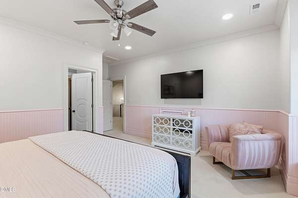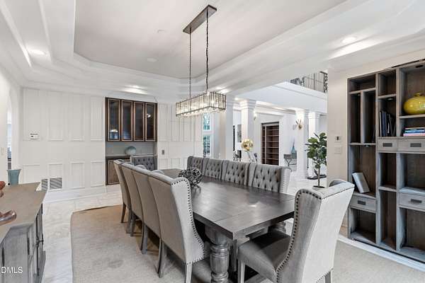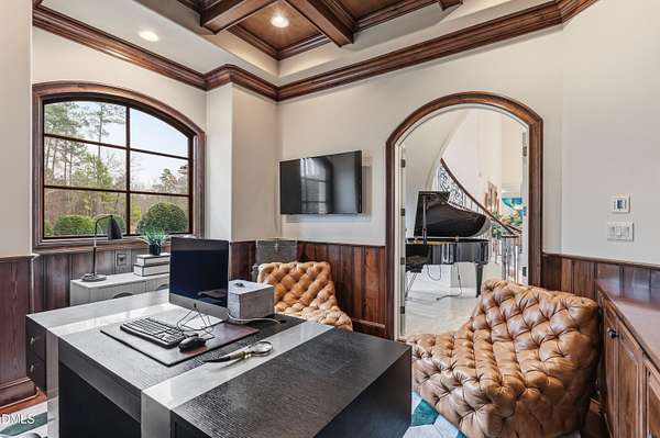 Behind the gates of ''The Hills of Rosemont'', one of the NC Triangle's most sought-after private & exclusive communities, lies a Mediterranean Tuscan Villa-style 5-bdrm estate built by Rex Bost that boasts nearly 9000 sqft of dynamic living space, with a timeless fusion of classic architecture & modern features, outdoor living with pool/spa oasis, sitting on over 4 acres of secluded & wooded land. As you can walk through the grand foyer you'll be greeted by the spiral riverwood stairs & the 2-story formal living room with soaring trey ceilings, wet bar, fireplace, and floor-to-ceilings windows offering panoramic views into the pool. Look to your left to find the formal dining area & elevator access to all 3 levels. Look to your right to find the office/den w/ built-ins & coffered ceilings, powder room, and main level primary suite w/ fireplace, wet bar, access to terrace, spa bath w/ jetted tub, steam shower, walk-in-closet, and coffee bar. Gourmet kitchen equipped with climate-controlled 800+ bottle wine cellar, double wall ovens, 6 burner range w/ griddle, 2 warming drawers & massive range hood. 48' thermador fridge, apron sink, 2 dishwashers, and oversized breakfast area with access to expansive terrace w/ fireplace. 2-story family/great room includes fireplace, vaulted beamed ceilings, custom aquarium & TV arm. Main level also includes the laundry room, 2nd powder room, and access to a 3-car garage w/ room to fit car-lifts. As you walk up those spiral steps, you'll find 3 generously-sized suites, bonus room w/ attic space, and loft area w/ juliet balcony overlooking the great/family room. One of the upstairs suites includes another loft area, with a juliet balcony overlooking the pool. Fully finished walk-out basement includes expansive living & recreation area w/ fireplace, kitchen, theater room, additional full suite, and a full pool bath. Additional storage/mech rooms with a concrete safe room. Fenced-in backyard includes an expansive patio area, outdoor grill, heated & cooled saltwater pool & hot spa, and tanning deck. This home also has an EV charger & central vac. Innumerable elegant touches throughout the property; arched doorways, intricate molding, light fixtures & chandeliers, concrete barrel tile roof, 5 fireplaces, stained glass dome above spiral steps, and so much more. Located across the street from the prestigious Old Chatham Golf Club, backing the American Tobacco Trail. This property feels very rural & secluded, though it is right in the middle of Chapel Hill, Southpoint Durham, Cary, Apex, Morrisville, RTP, RDU. This is a home like no other, come see it today.