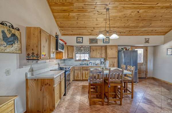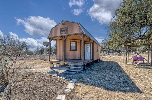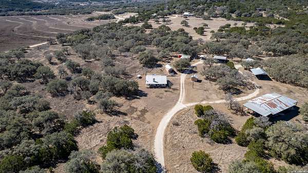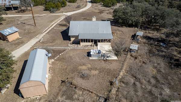Discover this unique 16-acre property offering space, functionality, and country charm, all conveniently located close to Leakey with county road frontage. The main residence is a solid rock home featuring 2 bedrooms and 2 bathrooms, highlighted by a cozy fireplace and a screened-in porch-perfect for relaxing and enjoying the surrounding landscape. A well-designed outdoor cooking area makes the property comfortable for everyday living or entertaining. A separate guest cottage provides additional accommodations, ideal for visitors, extended family, or potential rental use. The land is fully fenced and cross-fenced, making it well-suited for horses, goats, or other livestock. Multiple outbuildings and storage sheds offer ample space for equipment, hobbies, or ranch operations. The property also includes multiple RV hookups, adding flexibility for guests or recreational use. Scattered mature trees enhance privacy and natural beauty throughout the acreage. The property is equipped with all utilities, including a private well, making it both practical and self-sufficient. This versatile property combines rural living with accessibility and is ideal for those seeking space, animals, or a multi-use homestead.