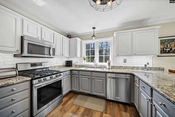 Beautifully wooded country living 8 minutes from downtown Chapin, “Capital of Lake Murray”. Tucked away at the end of a cul-de-sac and surrounded by over 2 1/2 acres of forest this meticulously maintained one-story brick and vinyl home offers privacy with all the features you want most.The spacious great room, with cathedral ceiling, gas fireplace, and built-in bookcase, opens to the dining room and kitchen which has been updated with granite countertops, tile backsplash, and stainless steel appliances.The formal dining room features French doors that open to a Trex deck overlooking the built-in swimming pool! The primary suite features a large walk-in closet and luxury bath. Bedrooms 2 and 3, with their shared bath, are on the opposite side of the home. All with LVP and tile flooring, NO carpeting.There is a 4 car garage/shop with extra garage door that accesses the backyard for easy access to trails for ATV. All this and LR5 schools, arguably the best in the state. Disclaimer: CMLS has not reviewed and, therefore, does not endorse vendors who may appear in listings.