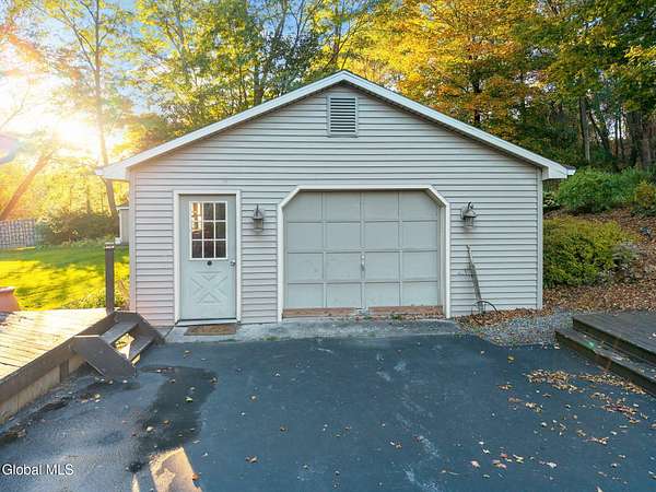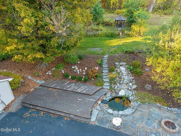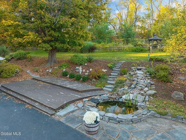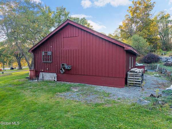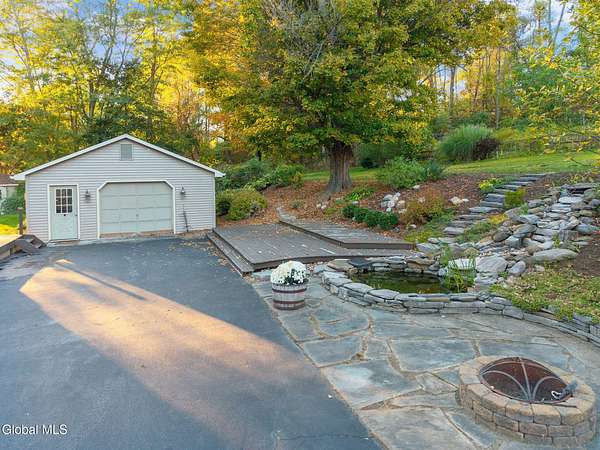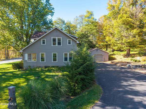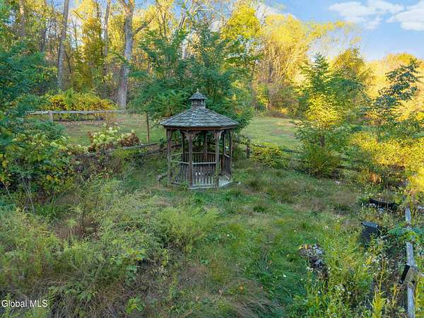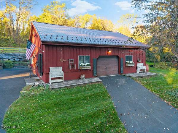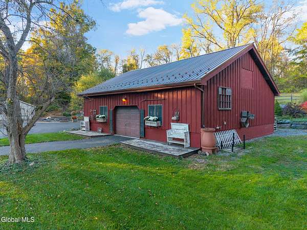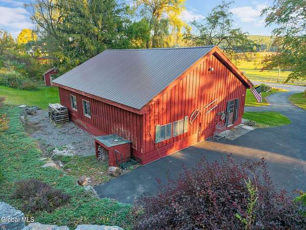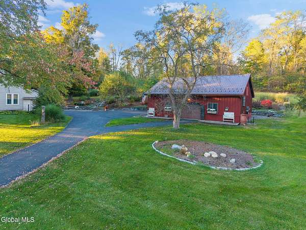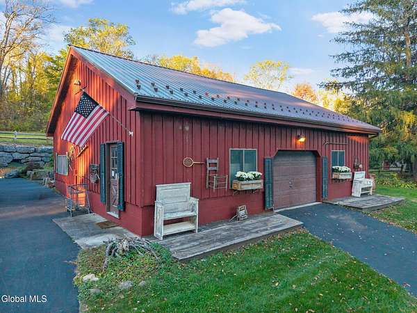 Set on 4.82 private acres, this charming Cape Cod in the heart of Schoharie County captures the best of country living - peaceful surroundings, beautiful views, and a home filled with warmth and character. A stunning 35x40 garage with a large timber-accented cathedral ceiling adds to the property's appeal, blending craftsmanship, functionality and rustic elegance. With its soaring ceiling and generous space, it's perfect for car enthusiasts, woodworking, creative projects or even a future studio or workshop. The heart of the home is the updated kitchen, a true showpiece featuring cafe appliances, classic shaker cabinets and a spacious island that invites gathering. The formal dining room, accented with wainscoting, provides a warm and elegant setting for family dinners and celebrations. The welcoming foyer leads to a bright layout that includes an office, first-floor laundry, and half bath. A cozy living room with a fireplace offers the perfect place to unwind at day's end. Upstairs, three comfortable bedrooms and a full bath provide restful spaces to recharge. New windows and ample insulation keep the home efficient year-round, and the full basement adds plenty of storage. Outdoors, this property truly shines with beautifully landscaped grounds, a peaceful waterfall, charming gazebo, quarry stone rock walls and mature perennial gardens that bloom beautifully through the seasons. It's a serene and inviting setting, ideal for relaxing mornings or evening gatherings surrounded by nature. In addition to the impressive garage, the property includes a two-car garage, barn, outbuilding, and shed. There's ample room for gardening, hobbies, or simply enjoying the stunning meadow, mountain and valley views. Life in Schoharie County offers endless opportunities to explore - from Howe Caverns and Mine Kill State Park to Schoharie Creek, historic landmarks, and local farms. This home offers the perfect balance of comfort, charm and country living