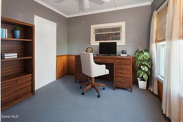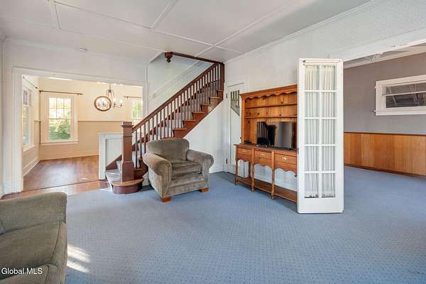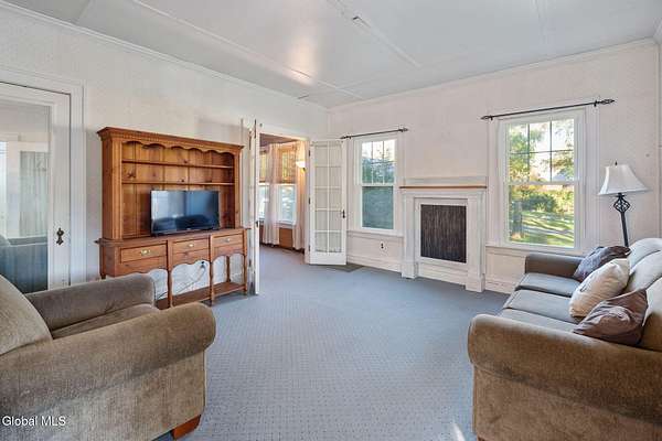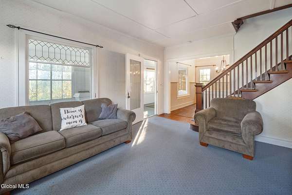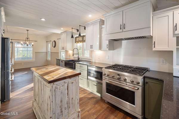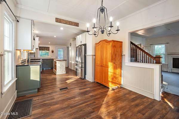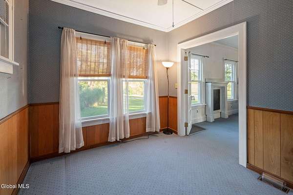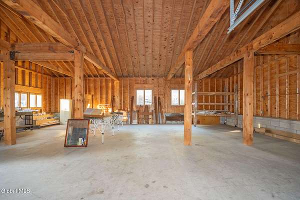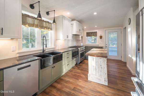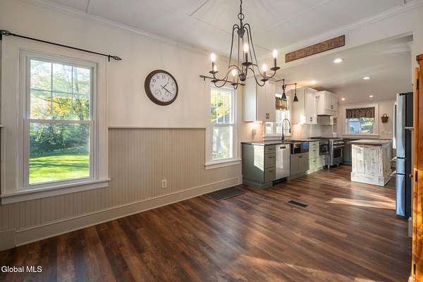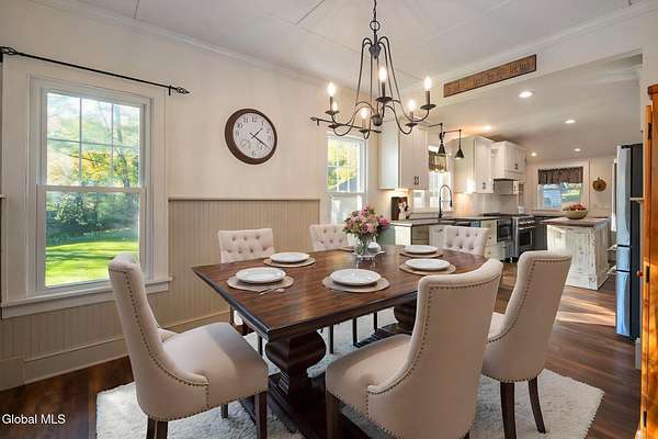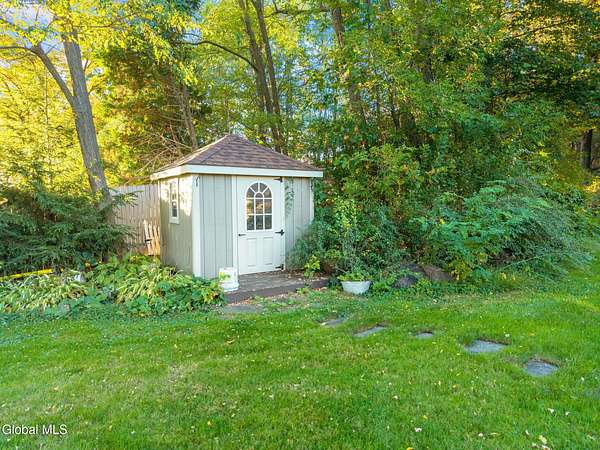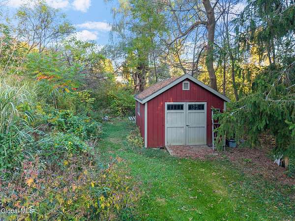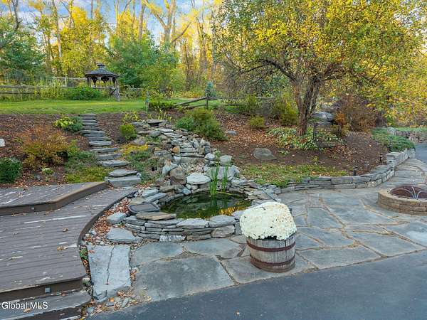 Set on 4.82 private acres, this charming Cape Cod in the heart of Schoharie County captures the best of country living - peaceful surroundings, beautiful views, and a home filled with warmth and character. A stunning 35x40 garage with a large timber-accented cathedral ceiling adds to the property's appeal, blending craftsmanship, functionality and rustic elegance. With its soaring ceiling and generous space, it's perfect for car enthusiasts, woodworking, creative projects or even a future studio or workshop. The heart of the home is the updated kitchen, a true showpiece featuring cafe appliances, classic shaker cabinets and a spacious island that invites gathering. The formal dining room, accented with wainscoting, provides a warm and elegant setting for family dinners and celebrations. The welcoming foyer leads to a bright layout that includes an office, first-floor laundry, and half bath. A cozy living room with a fireplace offers the perfect place to unwind at day's end. Upstairs, three comfortable bedrooms and a full bath provide restful spaces to recharge. New windows and ample insulation keep the home efficient year-round, and the full basement adds plenty of storage. Outdoors, this property truly shines with beautifully landscaped grounds, a peaceful waterfall, charming gazebo, quarry stone rock walls and mature perennial gardens that bloom beautifully through the seasons. It's a serene and inviting setting, ideal for relaxing mornings or evening gatherings surrounded by nature. In addition to the impressive garage, the property includes a two-car garage, barn, outbuilding, and shed. There's ample room for gardening, hobbies, or simply enjoying the stunning meadow, mountain and valley views. Life in Schoharie County offers endless opportunities to explore - from Howe Caverns and Mine Kill State Park to Schoharie Creek, historic landmarks, and local farms. This home offers the perfect balance of comfort, charm and country living