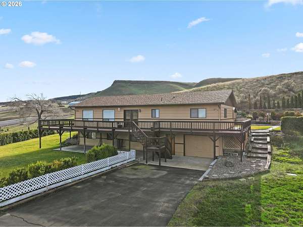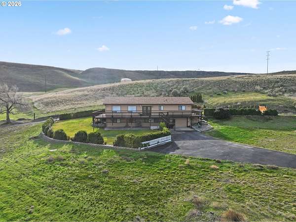 Welcome to 1490 Main Street in Arlington! Set in a peaceful setting, this 3,000 sq ft home offers 5 bedrooms and 3 full baths. Built in 1990, the home features a spacious and versatile floor plan with generous living areas ideal for both everyday living and entertaining. Step outside to a wraparound deck, perfect for taking in the Columbia River views, relaxing, or hosting gatherings while enjoying the surrounding natural beauty. The expansive acreage provides privacy, open space, and endless possibilities for outdoor enjoyment, recreation, or future expansion. Possibility to subdivide the land- buyer to do due diligence. Two garage spaces- one tucked under on the lower level as well as a detached single car garage. New heat pump as of 2025 for efficient heating and cooling as well as new carpets upstairs and freshly painted exterior! Come see all this property has to offer!