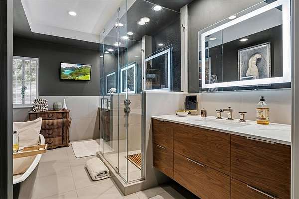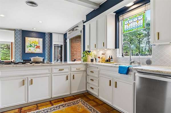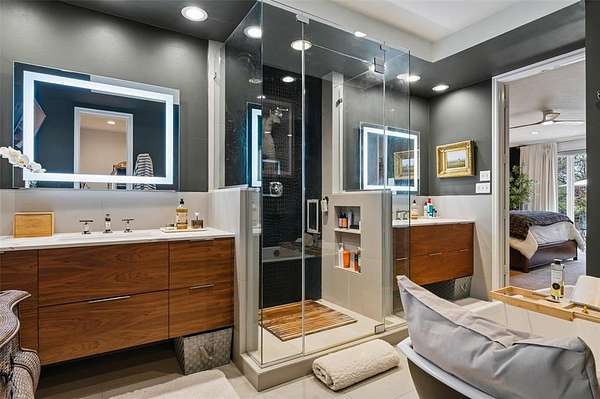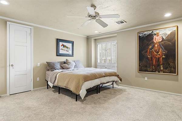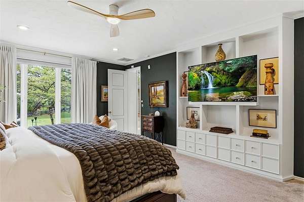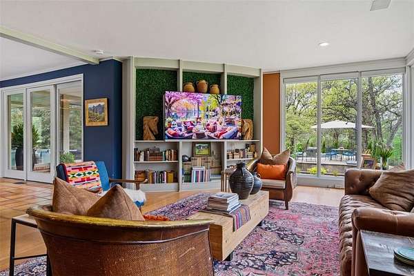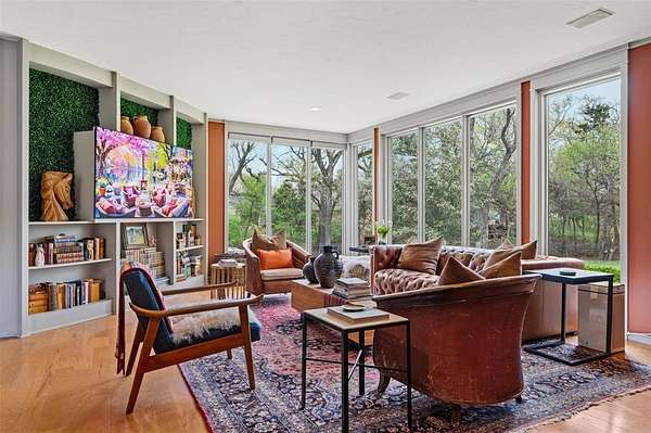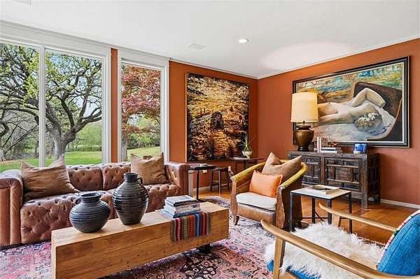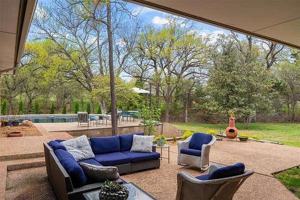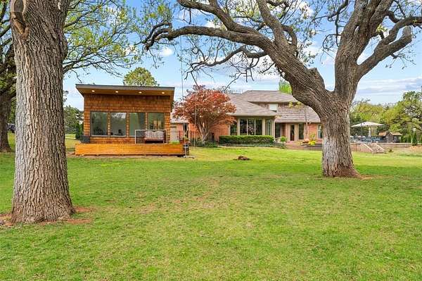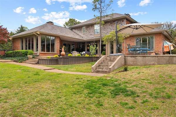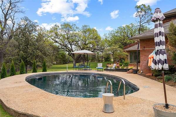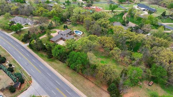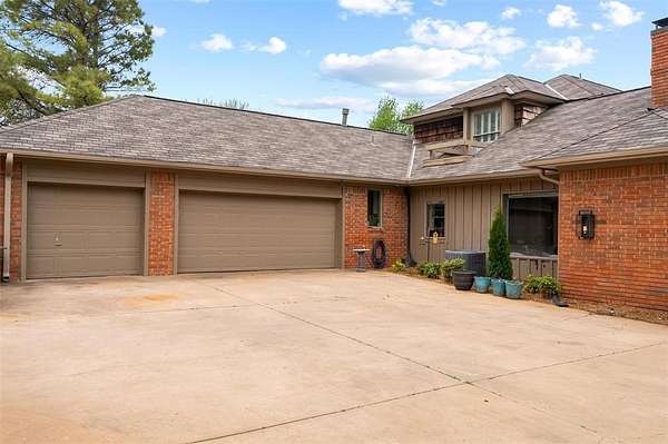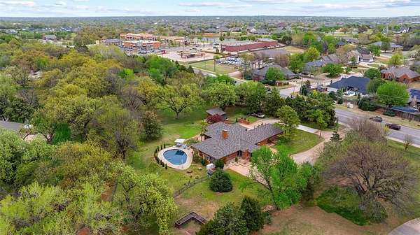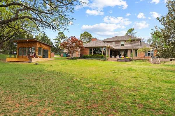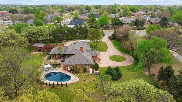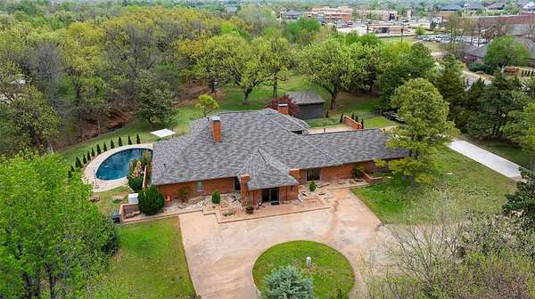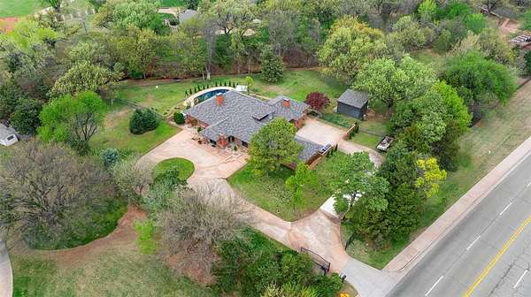 This quiet oasis tucked behind a gated drive and surrounded by mature trees, is one-of-a-kind property offers unmatched privacy in a prime location. Designed by Jim Frazier, this custom, two-owner home showcases a timeless soft contemporary style with exceptional craftsmanship throughout. Expansive floor-to-ceiling Pella windows flood the home with natural light and provide stunning, year-round views of the lush grounds. The spacious main living area features dramatic windows and a striking fireplace, creating a warm yet sophisticated atmosphere. A second large fireplace anchors the kitchen, making it both inviting and functional. Generous room sizes define the home, including a private downstairs primary suite with dual closets and a well-appointed bath including an electric fireplace. Upstairs, you'll find two additional bedrooms, both with en-suite baths. A charming den/library/study just off the kitchen offers the perfect space for work or relaxation.Step outside to enjoy beautifully maintained grounds complete with sparkling pool, and full irrigation system supplied by a private well. A versatile backyard outbuilding (approximately 450SF -perfect as a she shed, art studio, office, or creative workspace-has been added, along with raised garden beds and a charming chicken coop. An automatic gas generator ensures uninterrupted comfort in any situation. Located just one mile north of Memorial and Chisholm Creek shopping and dining, this property offers the rare combination of total seclusion and city convenience. A truly unique opportunity! **OKC MLS is having an issue with listings including a POOL. This listing does have a pool but I cannot mark it as a part of the listing at this time. This should be remedied in 24-48 hours.