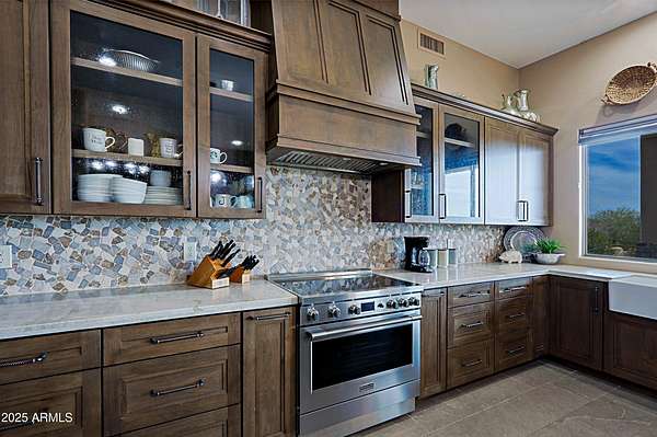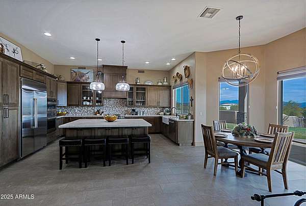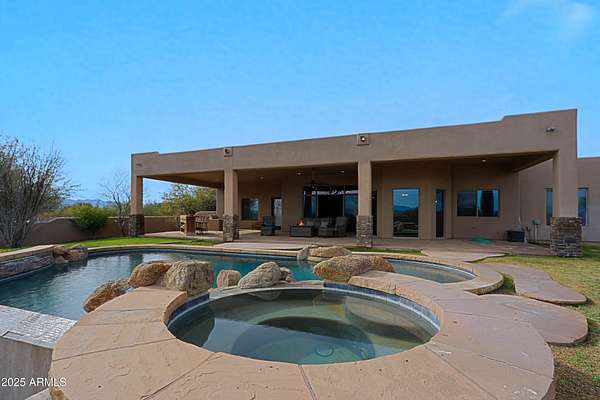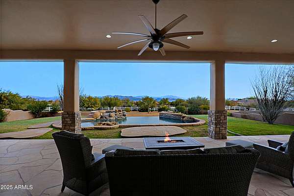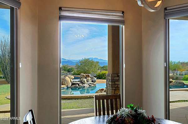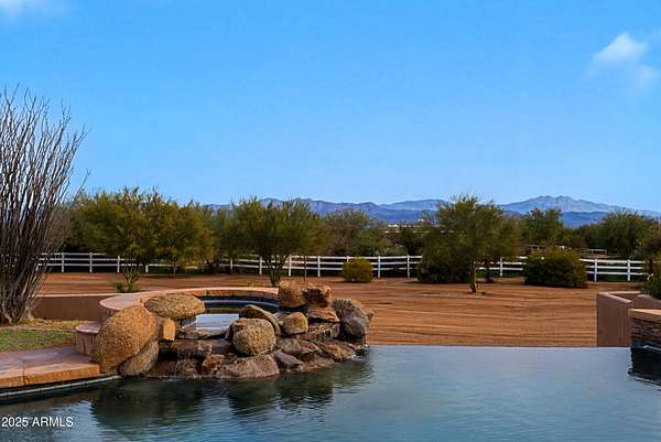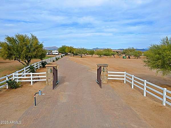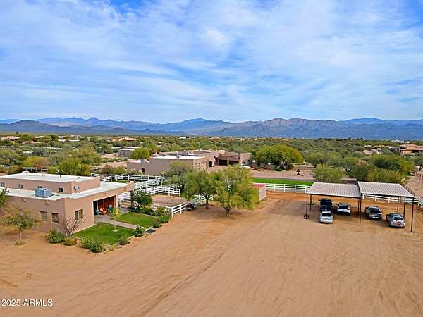Properties like this don't come around often; especially with a private barn like this. Privately gated and beautifully remodeled, this exceptional 5-acre property offers the perfect blend of luxury living and equestrian living. Priced at $2,250,000, the property features a 4,377 sqft main residence plus an additional 500 sqft guest quarters located in the barn. Originally built in 2007 and extensively remodeled in 2021-2022, the home showcases stunning views, two spacious primary suites, and a gorgeous chef's kitchen designed for entertaining. The outdoor living experience is equally impressive with an infinity pool and spa with rock features, fully fenced acreage, private well, and a thoughtfully designed dog run. A circular paver driveway leads through the gated entrance to a charming courtyard-style entry, creating a welcoming arrival. Equestrian amenities include a custom stucco five-stall barn with runs, wash rack, grooming bays, tack room, laundry room, bathroom, and private guest quarters. This property seamlessly combines refined Arizona living with a turnkey horse setup offering privacy, functionality, and timeless style in one remarkable estate.