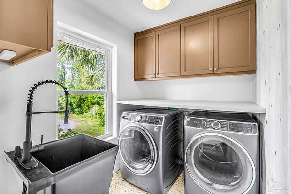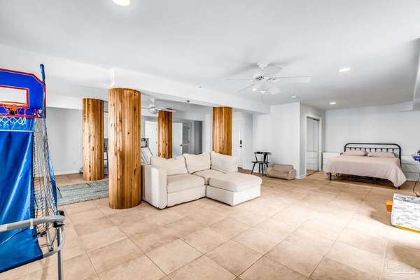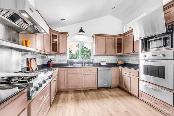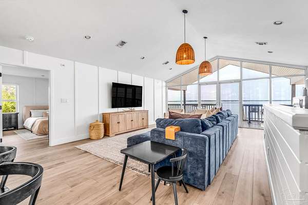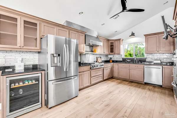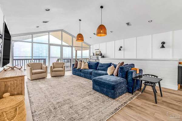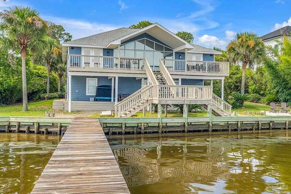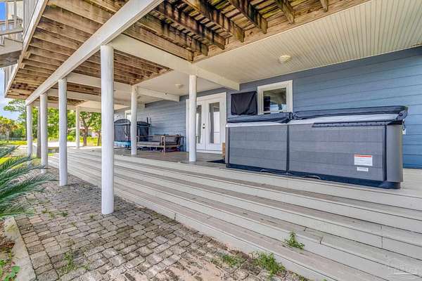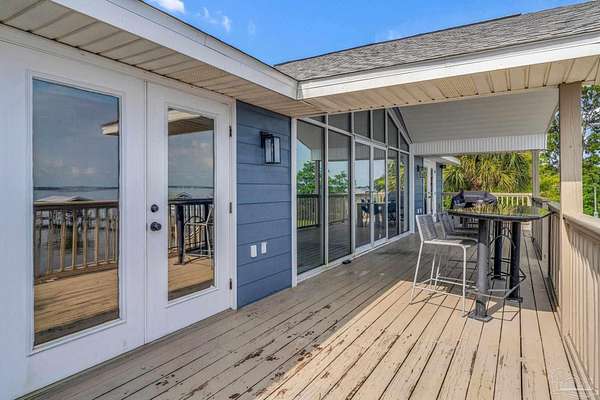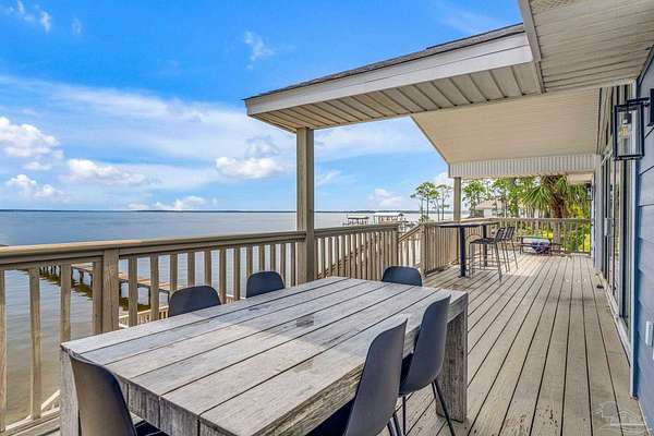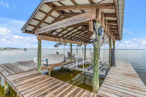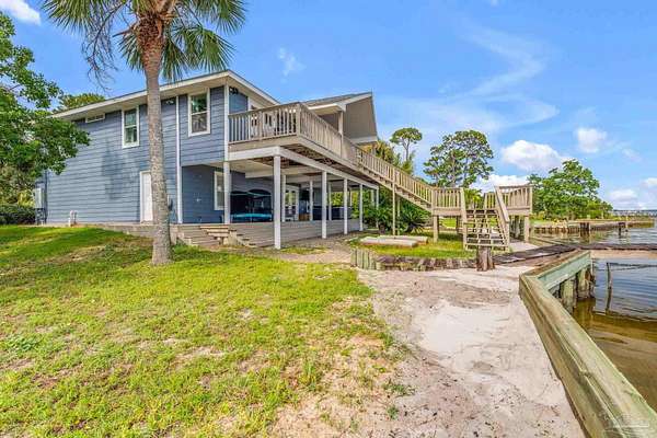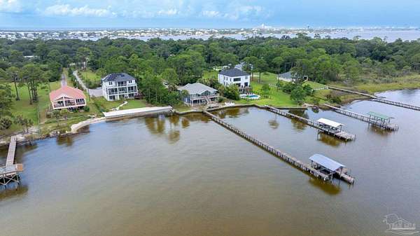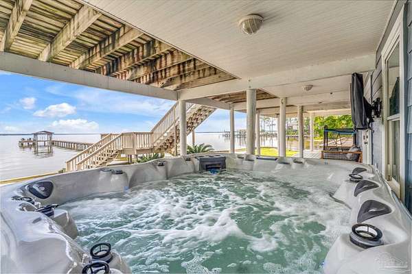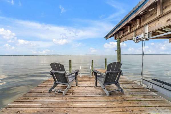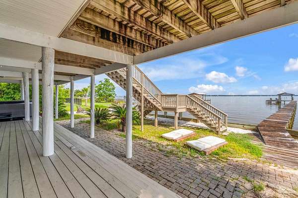 Stunning Waterfront Retreat on Perdido Bay - A Rare Find on 1.9 Acres Discover your own slice of paradise with this beautifully updated single-level home perched on pylons, offering breathtaking views, privacy, and luxurious waterfront living. Thoughtfully designed with a spacious open-concept floorplan, this 3-bedroom, 2-bath home features the master suite on one side and guest bedrooms on the other--perfect for both entertaining and everyday comfort. Enjoy dazzling sunsets and serene water views from nearly every room, or step outside to lounge in the 8-person hot tub, cast a crab trap, or watch dolphins play in the bay. Paddleboard, kayak, or fish right from your private dock, complete with a boat house and boat lift--everything you need for life on the water. Inside, the chef's kitchen impresses with a Viking range, stovetop, vent hood, wine fridge, and an abundance of solid wood cabinetry. Beautiful hardwood floors, recessed lighting, and stylish fixtures elevate the living space, while the laundry room includes a utility sink and extra storage. The newly customized primary bathroom is a true spa retreat, featuring tadelakt plaster walls, a freestanding soaking tub, and a luxurious dual shower. Other recent upgrades include a new air conditioning unit, refrigerator, dishwasher, and water heater--ensuring move-in ready peace of mind. Downstairs, a one-car garage and spacious airconditioned bonus room offer endless possibilities--whether you envision a private gym, game room, or studio space. Step outside to your very own 90-yard private golf fairway or relax on the upper deck or lower patio with sweeping views of Perdido Bay. Set on nearly two acres, this secluded gem offers indoor-outdoor living at its finest--with unmatched waterfront access, privacy, and lifestyle amenities. Square footage and acreage measurements taken from tax records. Buyer should verify all dimensions to their satisfaction.