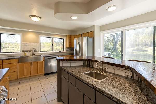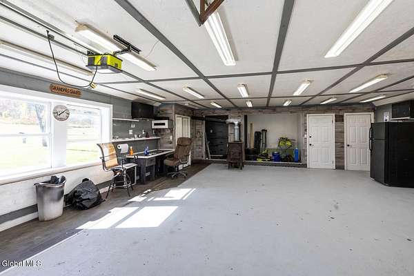 Discover the perfect blend of comfort, space, and country living at this beautiful 4-bedroom, 2.5-bath home with 2,122 sq ft of living space set on 10 private acres. Inside, you'll find a welcoming layout featuring a spacious living room, hardwood and laminate floors, and both a pellet stove and wood stove for cozy warmth and economical heating. The kitchen offers a center island, while the primary suite includes a walk-in closet, an ensuite, and a cozy covered deck, perfect for enjoying your morning coffee overlooking your tranquil private paradise. A finished, walk out basement provides extra flex space. Step outside to enjoy the patio and porch, perfect for relaxing and entertaining. Enormous garage/workshop area can easily accommodate hobbyists while still leaving room for your vehicles. Updates include a new septic tank, newer roof, and skylights, ensuring peace of mind for years to come.
