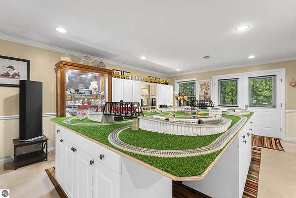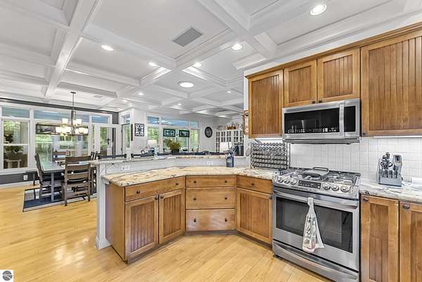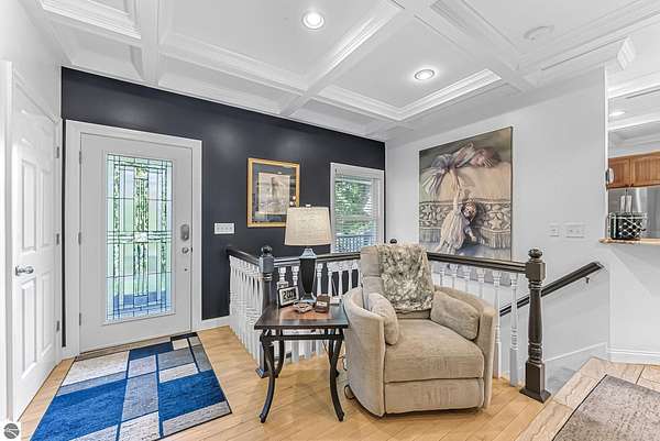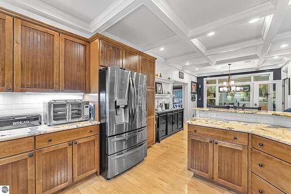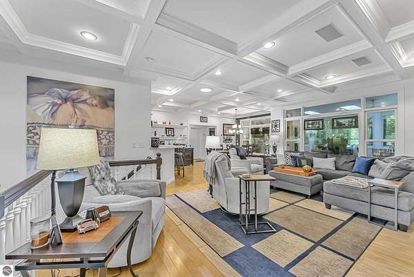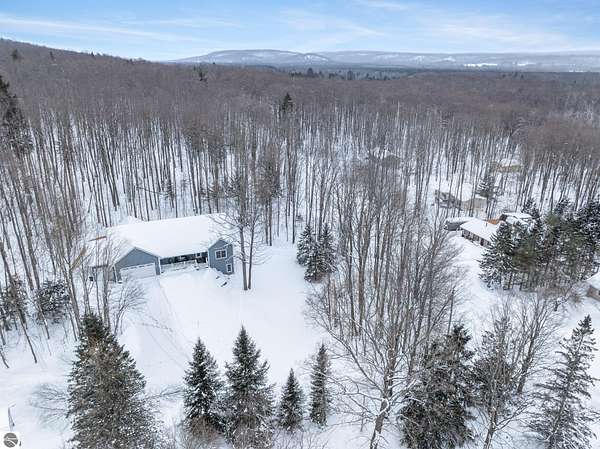 VA assumable mortgage - only assumable for a qualified VA eligible buyer in order to restore seller's VA entitlement. Step into elegance with this 4 bedroom, 3 bath home in Petoskey, set on 2.5 acres of natural beauty and surrounded by a private nature preserve on three sides. The open floor plan flows effortlessly beneath stunning coffered ceilings, while the gourmet kitchen boasts granite countertops and main-floor laundry for convenience. Retreat to the luxurious primary suite featuring a walk-in closet and a spa-like double shower. A bright 3 season room filled with natural light is the perfect spot to relax and take in the views. The finished walkout basement expands your living space, while the 3 car garage with epoxy floors and built-in storage keeps everything organized. A 12x24 shed offers even more space for tools, toys, or hobbies. With countless updates and serene surroundings, this property blends comfort, style, and nature into one perfect package.