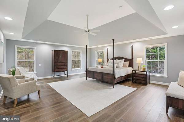 Open House Sat March 28th 1-3pm. Luxury estate living in Clarksburg on a private two-acre wooded lot with over 6,400 finished square feet, a walkout basement, and five garage spaces including a three-car attached and two-car detached garage. Welcome to 14912 Little Bennett Drive, a rare opportunity for space, privacy, and scale in Montgomery County. Offering approximately 4,200 square feet above grade plus a 2,000 square foot finished walkout lower level, this home delivers the size and flexibility luxury buyers are seeking. A dramatic two-story foyer with 19-foot ceilings and chandelier sets the tone. Formal living and dining rooms with bay windows flank the entry, while Shaw engineered hardwood flooring with a wire brushed finish spans the home. The kitchen features a cooktop, double wall ovens, extensive cabinetry including pantry storage, and a bright bay window overlooking the backyard with direct access to the patio for seamless indoor-outdoor entertaining. The rear of the home opens to a stunning two-story family room with gas fireplace, built-ins, and wine refrigerator. An additional oversized gathering room with bay window and yard access offers ideal space for entertaining, a secondary lounge, or extended living area. Main-level laundry adds everyday convenience. Upstairs are four spacious bedrooms and two full baths, including a large primary suite measuring approximately 22 by 20 feet. The primary bath includes a jetted soaking tub, separate shower, and dual vanities. The standout feature is the extraordinary 35-foot custom walk-in closet and dressing suite with built-ins, glass-front cabinetry, extensive hanging space, and a center island with drawers, a boutique-style space rarely found in homes at any price point. The finished walkout lower level adds nearly 2,000 square feet with a recreation room, second gas fireplace, wet bar, built-in speakers, fifth bedroom, full bath, and a dedicated office or flex room. Walkout access to the backyard and a separate stairway to the garage and mudroom enhance functionality and privacy. Additional highlights include: Two-acre wooded homesite Dual-zone gas heating 75-gallon water heater Multiple bay windows and abundant natural light Five total garage spaces Flexible layout for multi-generational living or home office needs If you are searching for a luxury Clarksburg home with acreage, extensive living space, a finished walkout basement, and exceptional storage and garage capacity, this property offers the scale, privacy, and versatility rarely available at this price point. Convenient to major commuter routes, parks, and local amenities while offering the feel of a private retreat.