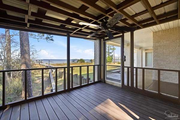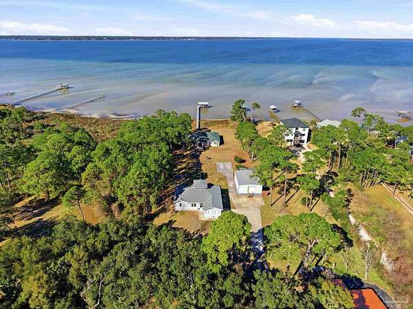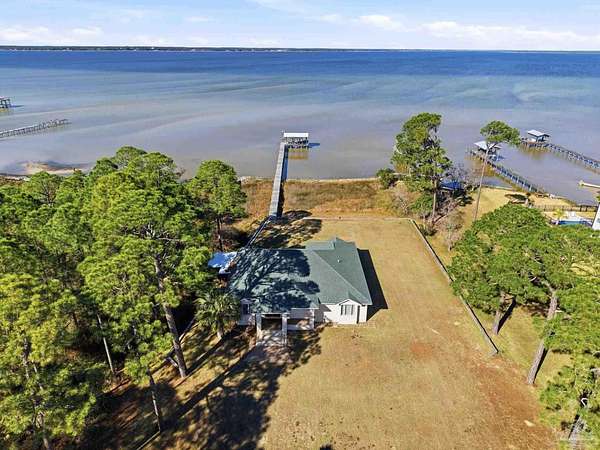 Experience exceptional waterfront living on Perdido Bay with this beautifully appointed coastal retreat designed to maximize views, comfort, & the boating lifestyle. The property offers 2 homes & a 30X40 warehouse/workshop with electricity and water. Along the water's edge, a substantial 120-foot riprap rock wall stabilizes the shoreline, while the property is further secured by a 327-foot, four-foot-high retaining wall constructed as a seawall that surrounds the property on three sides. This thoughtfully engineered system provides added peace of mind while preserving the integrity & beauty of the waterfront setting. A pier with boat lift, boathouse & fish cleaning station with electric & water make this property ideal for avid boaters & anglers. Inside the waterfront home, a spacious open-concept living, dining, & kitchen area is perfectly positioned to capture sweeping bay views from every angle. The kitchen showcases granite countertops, stainless steel appliances, & custom solid maple cabinetry, thoughtfully designed for both functionality & entertaining. The living room features custom built-in cabinetry & a propane fireplace, creating a warm yet refined gathering space overlooking Perdido Bay. The primary suite is a true waterfront sanctuary with a trey ceiling, recessed lighting, stunning bay views, & private access to the porch. The ensuite bath is elegantly finished with travertine countertops, a jetted tub, custom ceramic sinks with dual vanities, & a walk-in shower with bench & dual showerheads. Enjoy coastal breezes from the covered L-shaped back porch and the 14' x 14' screened porch. Major updates include a new water heater (2025), HVAC (2020), & roof (2021), offering peace of mind for years to come. This Perdido Bay waterfront property seamlessly blends luxury, durability, and an unbeatable boating lifestyle. If 14918 home is sold separately, it will be $500,000 and an access easement will be granted.