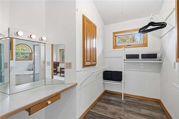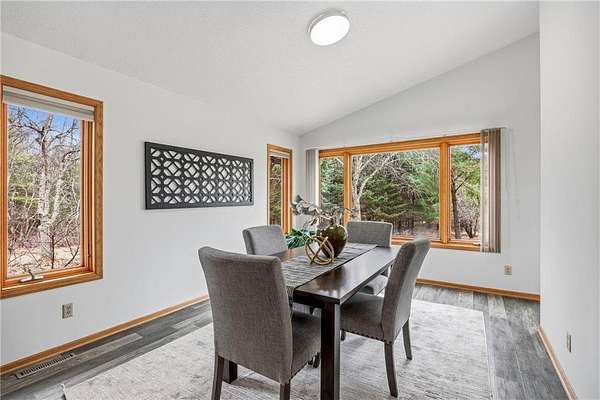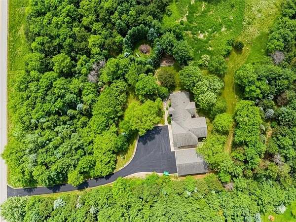 Once an open prairie, this 5.11-acre has been meticulously transformed into a private forest sanctuary with nearly 2000 planted trees that have matured over the past 25+ years. Go for a morning hike, walk your dog, snowshoe, or ride an ATV through this beautiful estate. The ultimate hobbyist setup features an 8-stall total capacity: an attached 3-car heated garage (equipped with a urinal and sink) plus a 5-car detached garage for all your toys and shop needs. Several high-value updates are already in place, including a new roof with commercial-grade gutters, mechanical updates, fresh paint throughout, and newly paved asphalt driveway. Solid foundation with loads of room for expansion in the lower level of the home and upper loft of detached garage. While exceptionally clean and move-in ready, some aspects of the interior reflects its 1995 origins, presenting an opportunity to build equity through cosmetic updates. Rare land, rare garage/shop space, rare privacy in one of Minnesota's most desirable townships. Bring your vision and your collection!