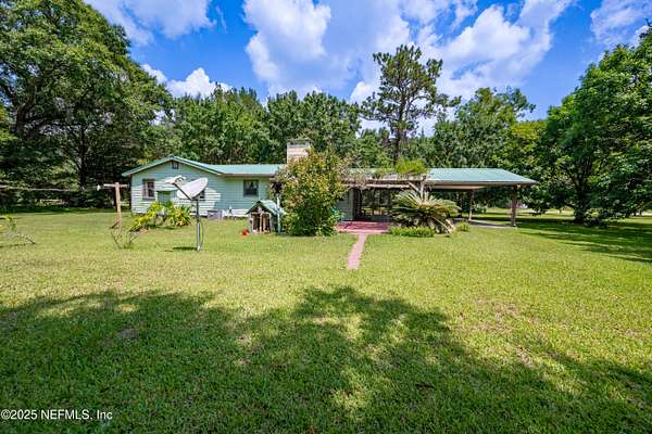 BACK ON THE MARKET and ready to go!!! Clear title and probate have been fully completed for a smooth, stress free closing. Peaceful country home on nearly three acres in Lawtey. This beautifully maintained property was originally a three bedroom, two bath and is currently staged as a spacious two bedroom, but converting it back is simple. The primary suite is used as a cozy family room and the living room as an oversized dining area, giving you flexible space to make the home work for your lifestyle. Enjoy the wood burning fireplace, a sunny breakfast area, and two screened in porches perfect for relaxing. The wide open yard offers plenty of room to garden, explore, or simply enjoy the quiet. Updates include a new HVAC system and a durable metal roof. A two car covered carport and indoor laundry room add everyday convenience. If you want privacy, room to roam, and the charm of small town living, this country retreat has it all.