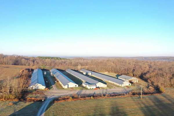 21 Oaks Free Range Broiler and Livestock Farm is a four house farm located in Christian County, Kentucky. This is near the town of Crofton. The farm consists of 52+/- acres which is mostly open land, a brick home, lake, ponds, and the poultry houses. These poultry houses are 43x510 built in 1998 and are currently growing Perdue's Free Range Broilers. Historical gross annual income on the poultry farm is around $245,000. Target weight is 6.8 lbs on a 44-46 day growout, growing 5.3 flocks per year. Additional income streams for this farm can be hay production, livestock, litter sales, or cash rents. Historical Litter Income has been $34,000 annually.