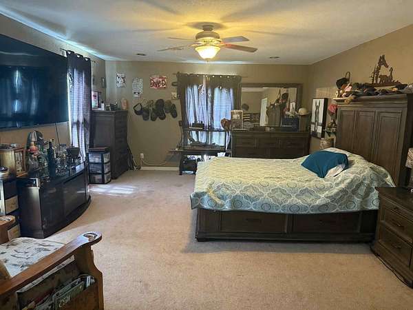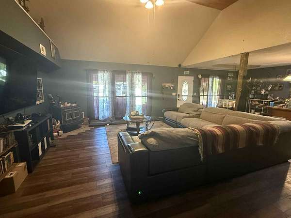 4BD 2.5BA Large Home on nearly 20 acres, great view from the back covered deck. Front porch is covered as well. Home has a 2 car attached garage with an enclosed breezeway leading to the house. Living room and kitchen are open floor concept, kitchen has lots of cabinets and center island. Master BD and BA are on the 1st floor. His/Her closets in the MD that lead to the huge MBA that has a walk in shower, jetted soaking tub and double vanities. Living room has newer laminate flooring, Beautiful mosaic tile design in foyer entrance. Office on Main level could be a 5th BD w/out closet. Property is partially fenced and has a small horse barn, solar panels (that need paid at close or loan assumed). and another storage bldg. This could the mansion on a hill that you've always dreamed of..... Wood Stove does not convey. Central H/A unit approx one year old.