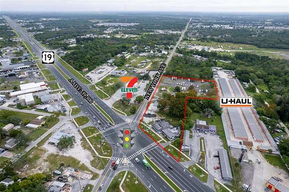 Under contract-accepting backup offers. Rare opportunity to purchase 4 acres directly on the extremely high traffic highway of U.S 19 in booming Hudson and neighboring the Gulf of Mexico. 214 feet of property on US 19. More exciting, is that it sits on the corner of the traffic controlled intersection of New York Avenue. This property wraps the entire corner and would be the perfect location for any C2 opportunity. Only a few examples of C2 include the following: gas station, car wash, retail bakery, bowling alley, hotel/motel, nursery, auto parts store, amusement facility, cabinet shop, contractors office/storage, dance hall/academy, dry cleaner, shooting/archery range and much more. This location has high visibility and an extremely large traffic count intersection. Electric and water ready. Currently on new septic and ability to connect to public sewer. Property is 35 minutes to Interstate 75, 15 minutes to 589, 5 minutes to the Gulf of Mexico. There are three pre-existing structures that more information is available for if interested or your could have cleared to create your perfect business opportunity. Surveys available.