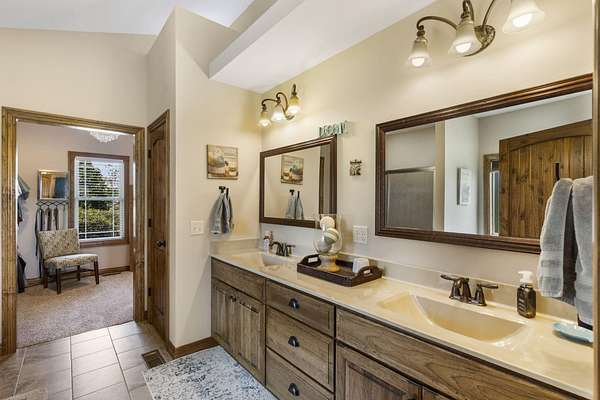 - Beamed Ceilings, Granite Counters, High Ceilings, Soaking Tub, Walk-In Closet(s), Walk-In Shower