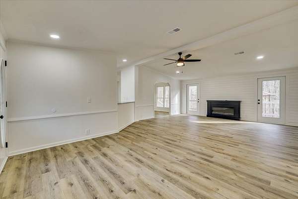 Beautifully updated split 3-bedroom, 2-bath home on 7+ tranquil acres with approximately 1,800 heated and cooled square feet. 2025 remodels include new roof, HVAC, kitchen cabinets, appliances, granite countertops, lighting, full bathroom updates, 20-mil luxury vinyl plank flooring throughout, fresh paint, and some new decking. Living room features a nickel gap accent wall and new electric fireplace. Dining room and laundry room included. The owner's suite offers a walk-in closet, his and her vanities, tile shower, and a freestanding tub with feature wall. Enjoy a covered back deck, outbuildings, propane gas stove and heat, 8x16 pole shed, and 12x16 storage building. Abundant wildlife and ample space for gardening, RV, or boat parking. Located just 10-15 minutes from downtown Lincolnton with grocery stores and restaurants. Approximately 28 miles to Publix Riverwood in Evans and 13 miles to Cherokee boat ramp. Property is served by Relyant 100 percent fiber optic high-speed internet and is located in a USDA-eligible area. Owner/Agent.