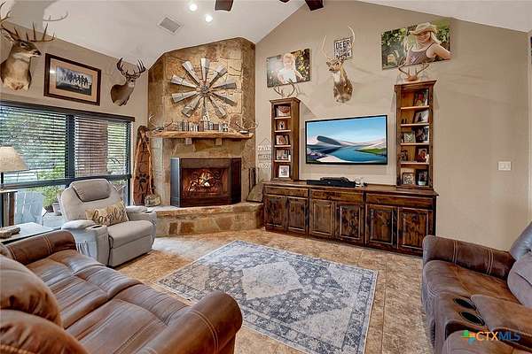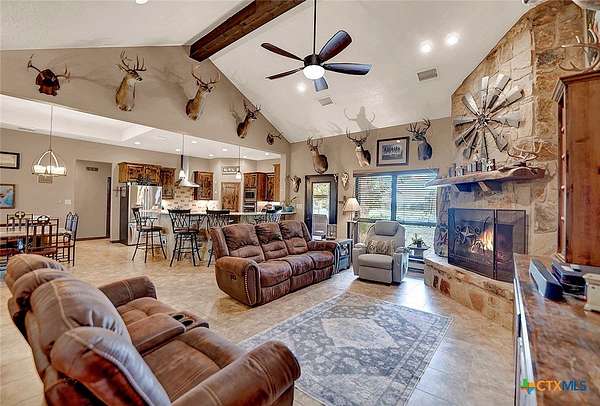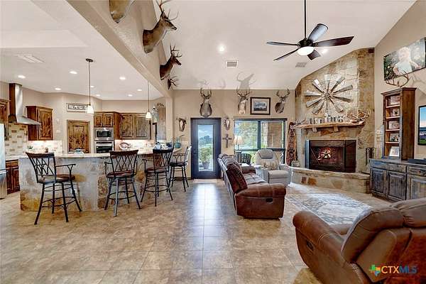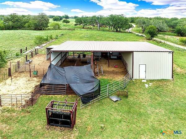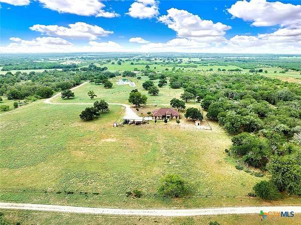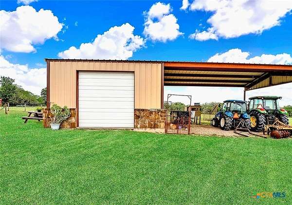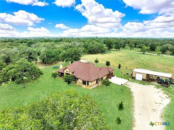 Gorgeous 100 Acres in Stockdale, TX features an Oak covered landscape, Large Stock Tank, and an Amazing Rock Home w/ Rock beds for crisp landscaping. It was built in 2017 and features Spacious Open Living/Dining/Kitchen, Floor to ceiling wood burning Rock Fireplace with gas starter, Custom built-Ins throughout, Island Kitchen Features granite counters, Gas Range, 2 Ovens (Gas & Electric), 4 bedrooms one w/ Built in Desk, 2.5 Baths, 2 Car Garage (Insulated), Water Softener System, Instant Gas Water Heater, Gutters, 2 water wells, Laundry Room with sink, cabinets, and a broom closet, Large Master Suite w/ Window Seat overlooking the backyard, Walk-In tile shower and jetted tub, double vanity and Large Master closet. The expansive covered back patio with outdoor fireplace and access to the half bath. It also features an outdoor shop/garage (20x20 Enclosed, w/ 20x20 Carport) Enjoy the evenings overlooking the stock tank. A Metal Barn upfront with Covered bays for livestock and 4H/FFA projects. It also features a Ranch House/Cabin that was fully remodeled nestled among the trees. This property features vast open areas of native grasses for grazing and many mature trees to offer shade cover throughout the property. Makes a great habitat for all kinds of wildlife. With neighborhood management you see Amazing Whitetail bucks for being low fenced, also the place boast a strong population of turkeys, dove, and hogs.