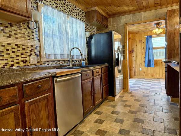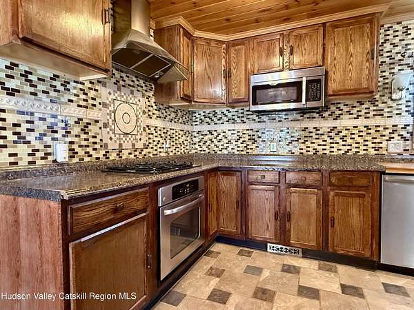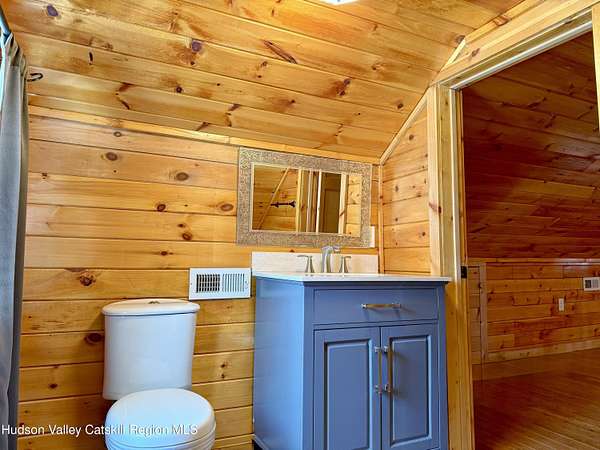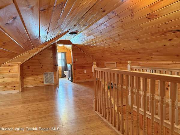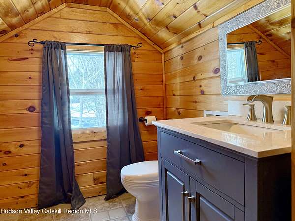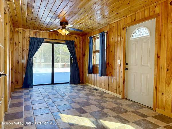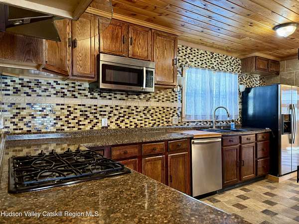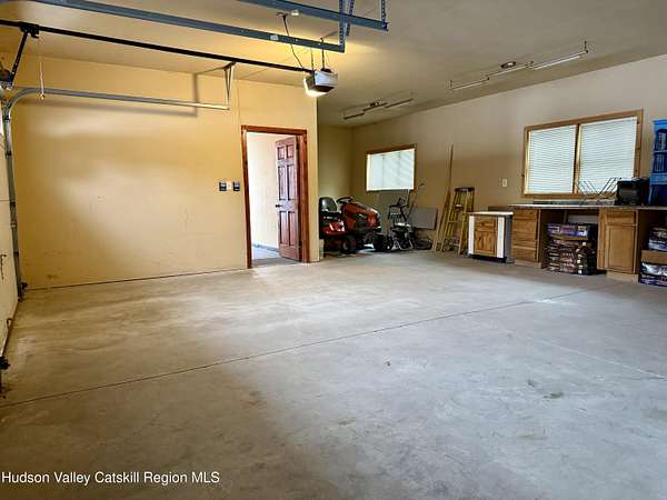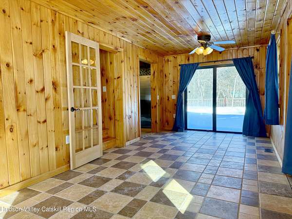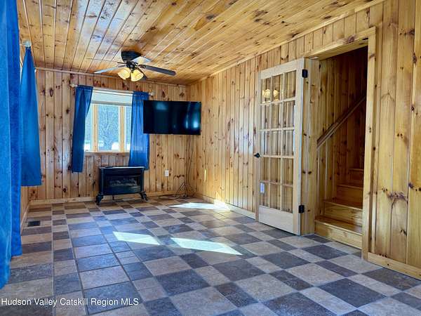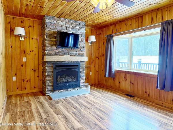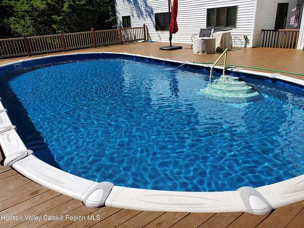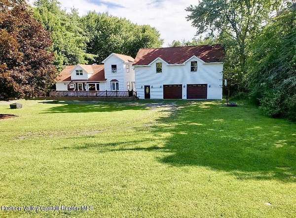 A Truly One-of-a-Kind Retreat with Endless Possibilities Welcome to a home that offers not only quality features, but limitless potential to bring your vision to life. Privately nestled on 1.5 acres, this inviting property is the perfect place to settle in, entertain, and create lasting memories. Step into this warm and welcoming home, where you'll find rustic knotty pine walls and ceilings throughout enhancing the home's charm, character and cabin feel. The front Trex deck leads you to the main door entering into the living room where you'll find a gas log fireplace with cultured stone and a bay window that brings in lots of natural light. The kitchen features abundant cabinetry, tiled backsplash and generous prep space. Stainless steel appliances include a gas oven with gas cooktop, side by side refrigerator, dishwasher and a Boche microwave. The beautiful granite countertop area offers the perfect setup for a morning coffee station. The kitchen flows seamlessly into the dining room, complete with tiled floors and a freestanding gas fireplace for added ambiance. From here, you'll find direct access to the garage and sliding glass doors leading to the large oval above-ground pool surrounded by Trex decking--ideal for summer gatherings or quiet mornings overlooking your private surroundings. Just off the primary bedroom is a thoughtfully designed tiled full bathroom featuring a large tiled shower, jetted soaking tub, and stackable washer and dryer for convenient main-level living. The home also features a Rinnai on demand hot water heater, central air conditioning, solid wood 6 panel doors, wood and vinyl framed double hung windows. The adjacent large two-car garage adds value and versatility. Garage has a separate electric meter and panel to be used for the upstairs loft. There's a room with separate entrances ideal for a home office, workout room, craft studio or to use to your liking. Above the garage, is a massive open loft which offers incredible potential awaiting your ideas. With the garage's close proximity to the pool area, imagine the possibility of a bar or kitchenette with a garage-style serving window to enhance your outdoor entertaining experience. Many items in garage are staying with the house. Conveniently situated just minutes from the NYS Thruway, Catskill, Windham Ski Resort, and less than 10 minutes to Zoom Flume Water Park, you'll enjoy easy access to year-round recreation while still savoring privacy. This home is NOT for Rent, please watch out for scammers.
